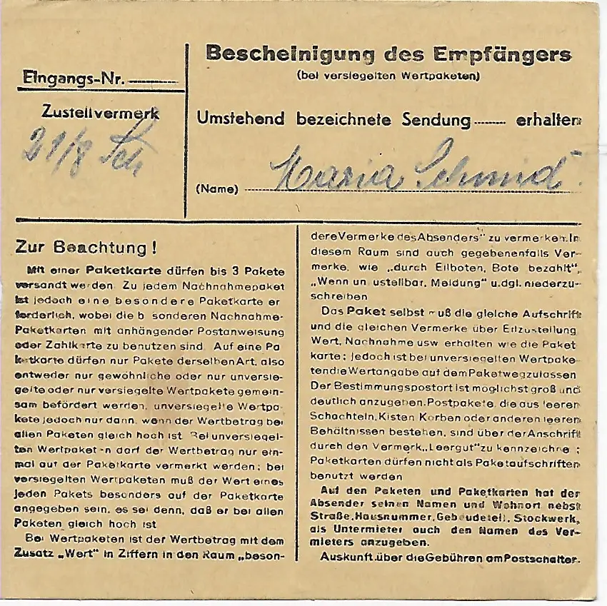 Carte de Kautheim/Jagst vers Bad Aibling MeF 1948