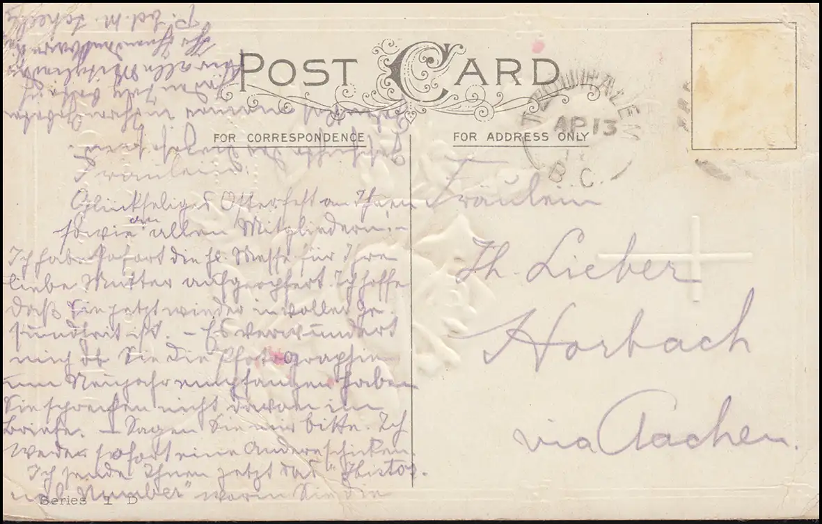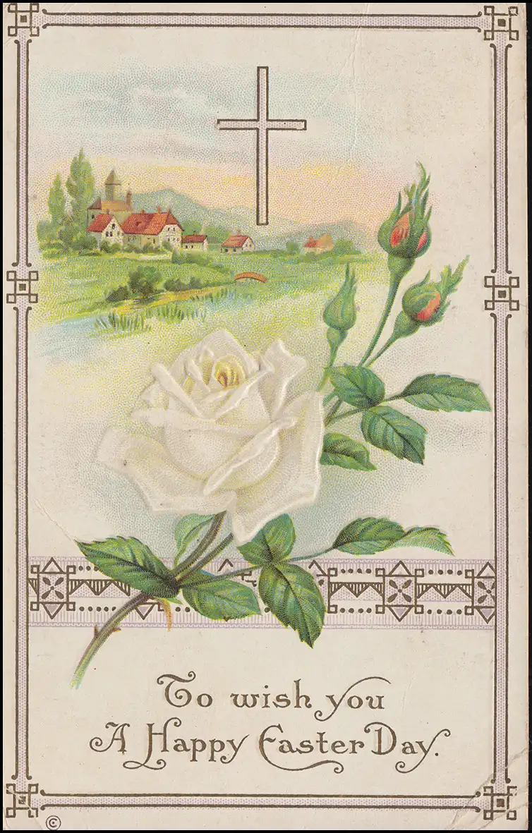 Carte de Pâques Canadienne Croix et Rose Blanche, TZOUHALEM vers 1913