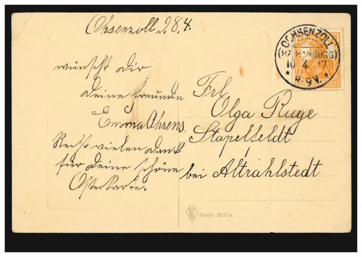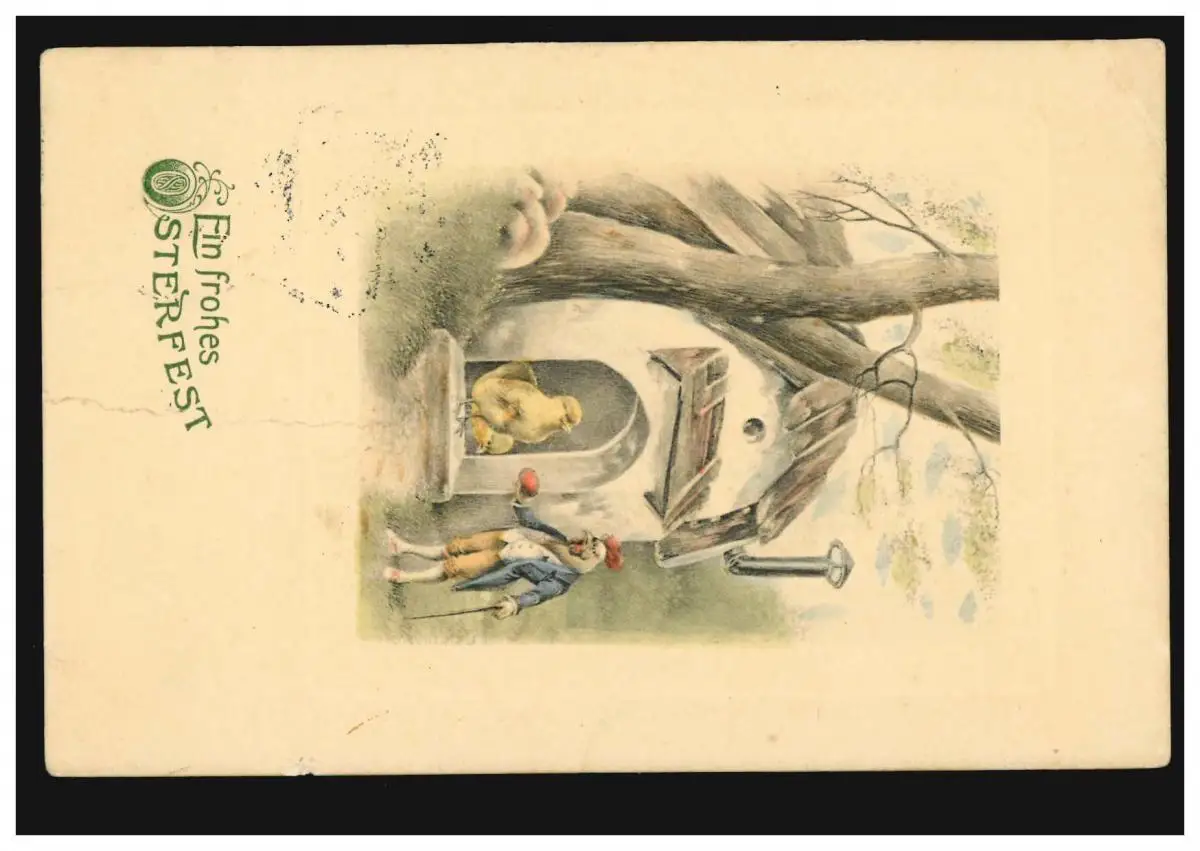 Carte de Pâques Coq d'humanisé avec poussin, OCHENENZOLL / BZ HAMBURG 1917
