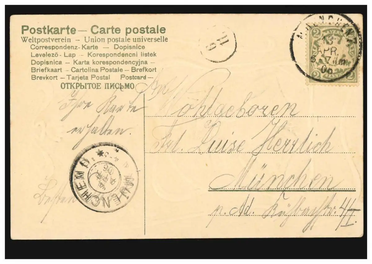 Carte de Pâques Médaillon avec église et cloches, PK local MUNICH 13.4.1906