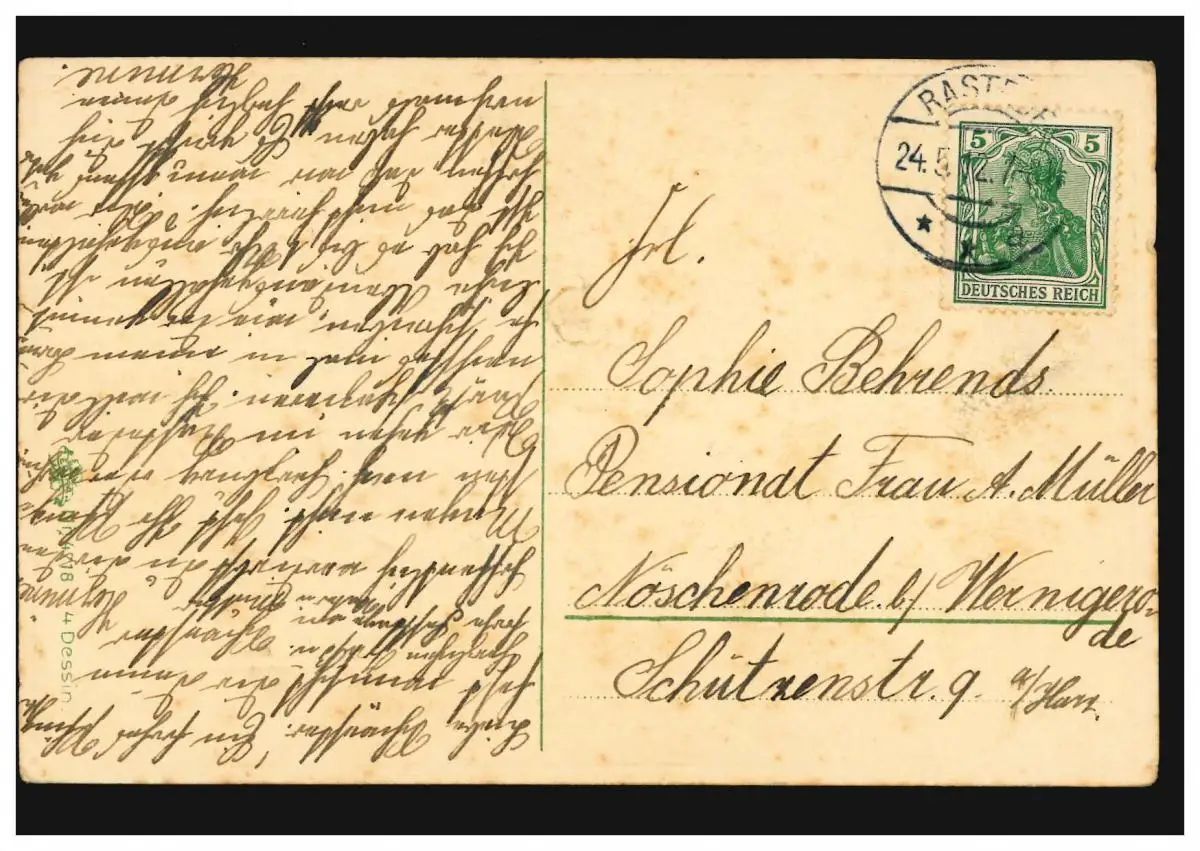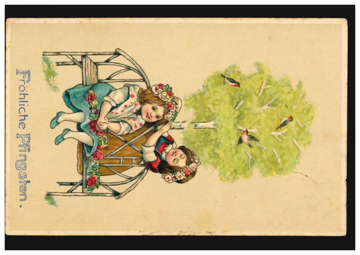 Carte de Pentecôte Filles à banquet avec bouleau et oiseaux, RASTEDE 24.5.1912