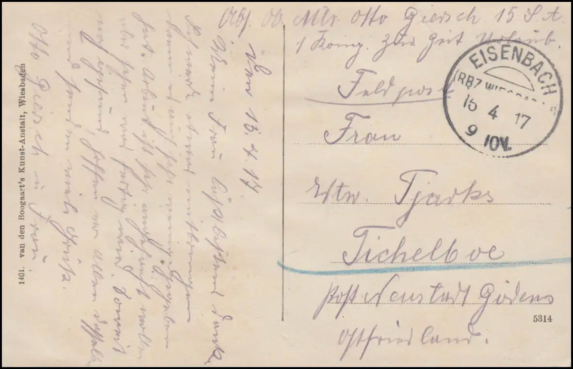 Carte de Wiesbaden Wilhelmstraße, EISENBACH (RBZ. WIESBADEN) 15.4.17
