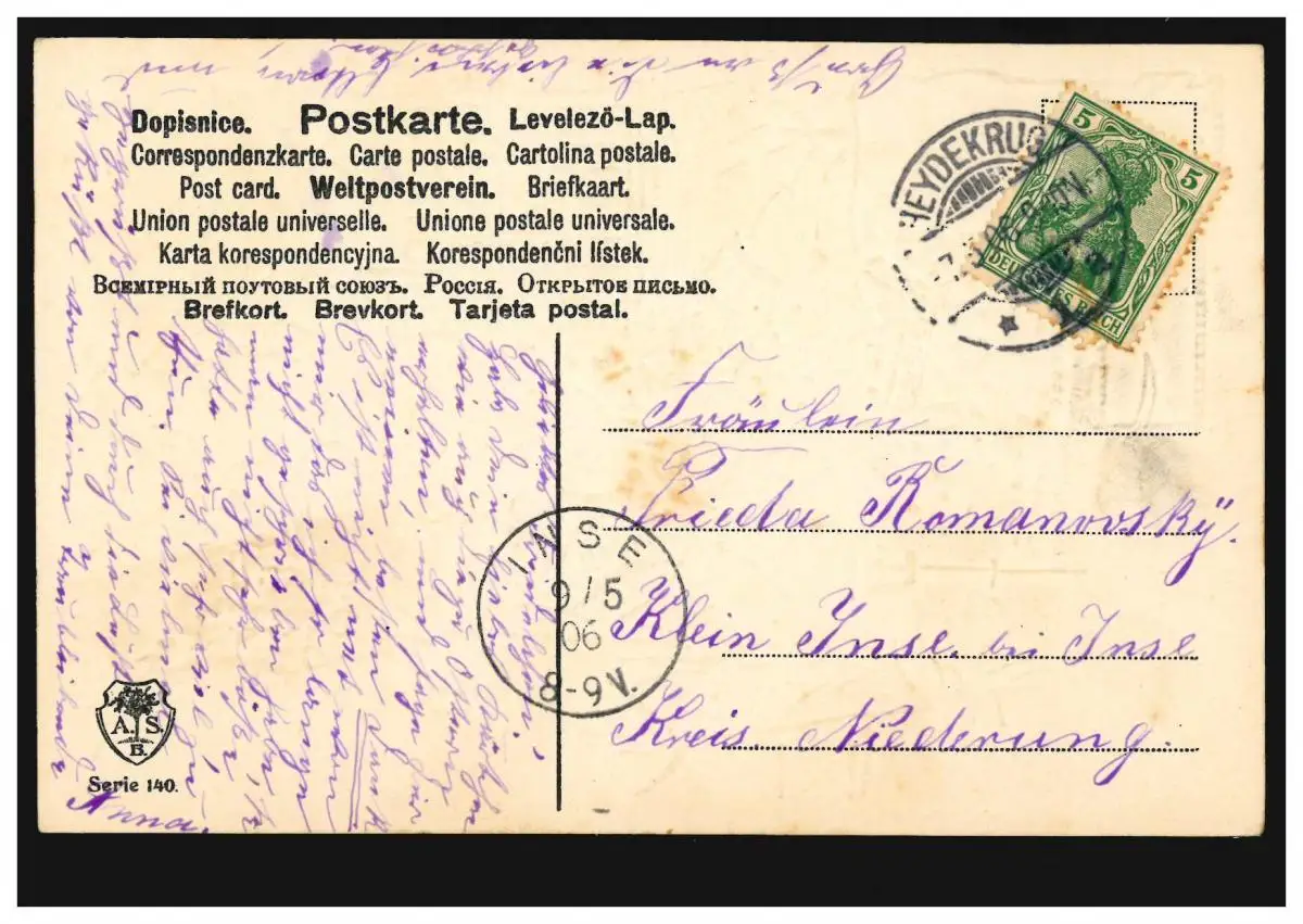 Tampon d'arrivée INSE 9.5.1906 Vérification: original Référence produit: 000000000388889>Note: Cet article n'est disponible qu'une seule fois. Vous recevrez exactement l'article représenté.
