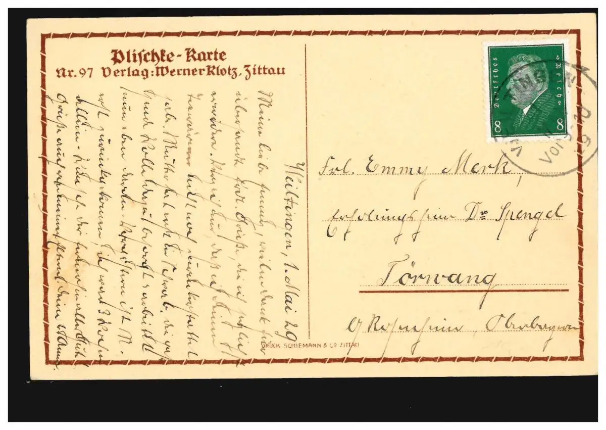 Carte de ciseaux Georg Plischke: Au Soleil ... WEILTINGEN 1.5.1929