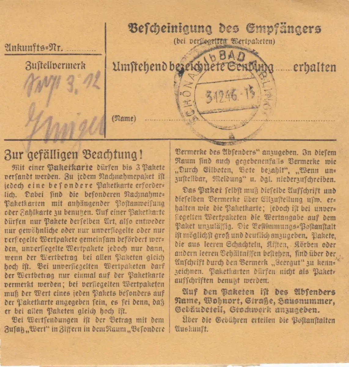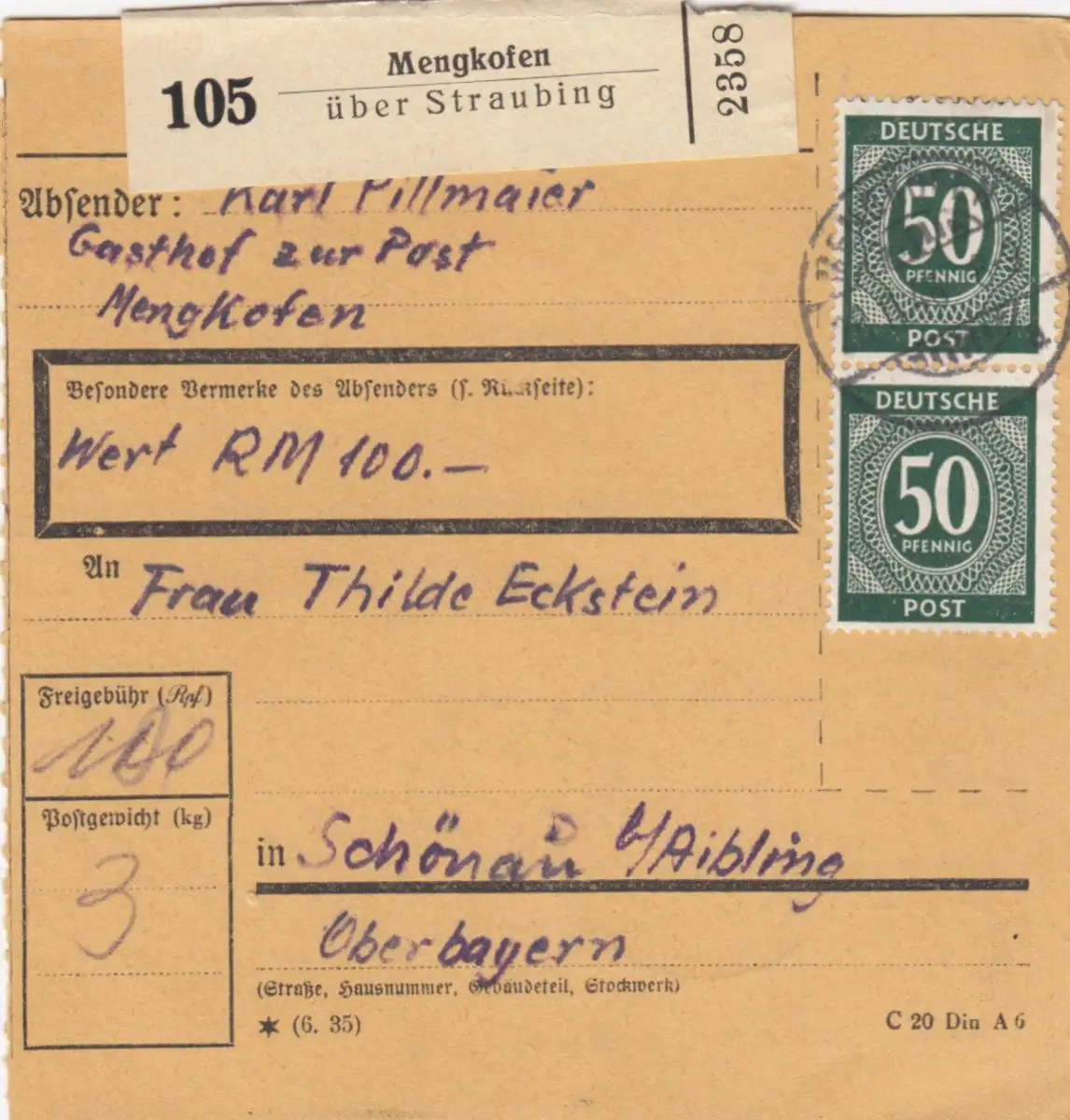 Carte de colis 1946: Mengkofen Gasthaus zu Post zu Schönau, FAQ