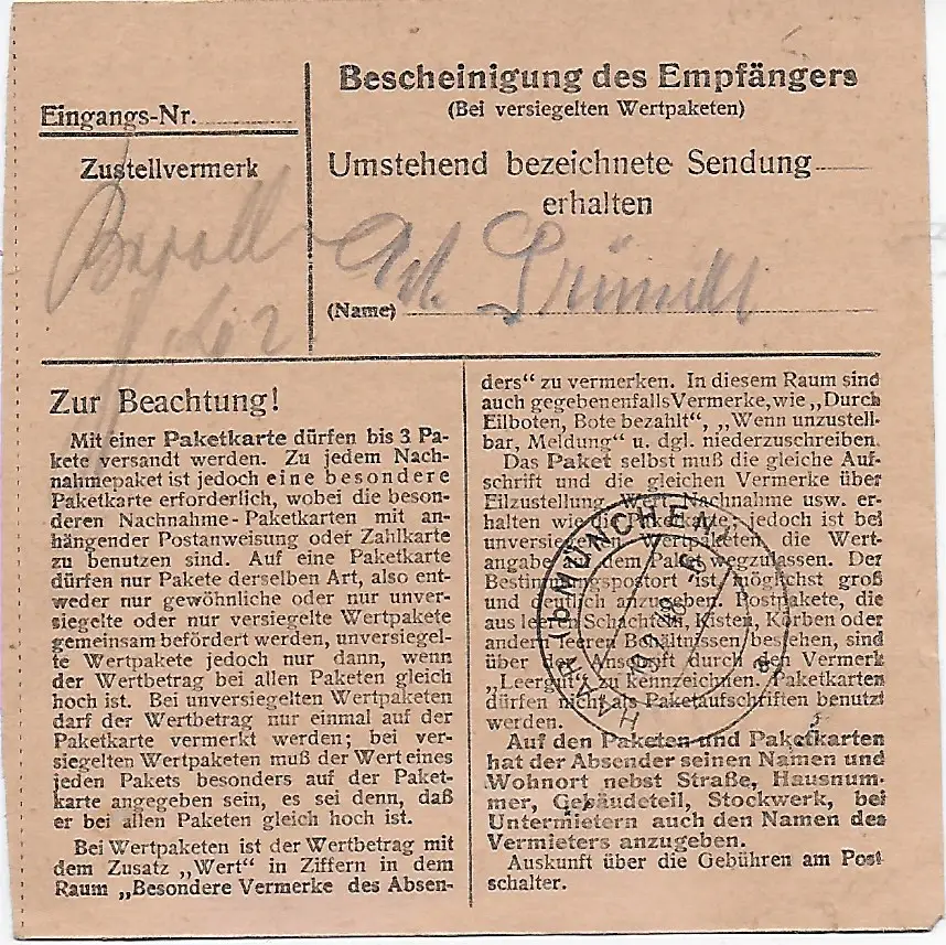Carte de colis Rosenheim vers Eglfing-Haar, 1948, MeF