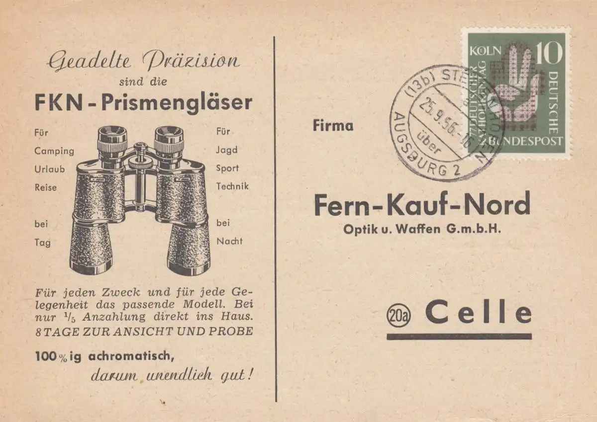 Carte de commande Jumelles Stelettenhofen près d'Augsbourg à Celle 1956