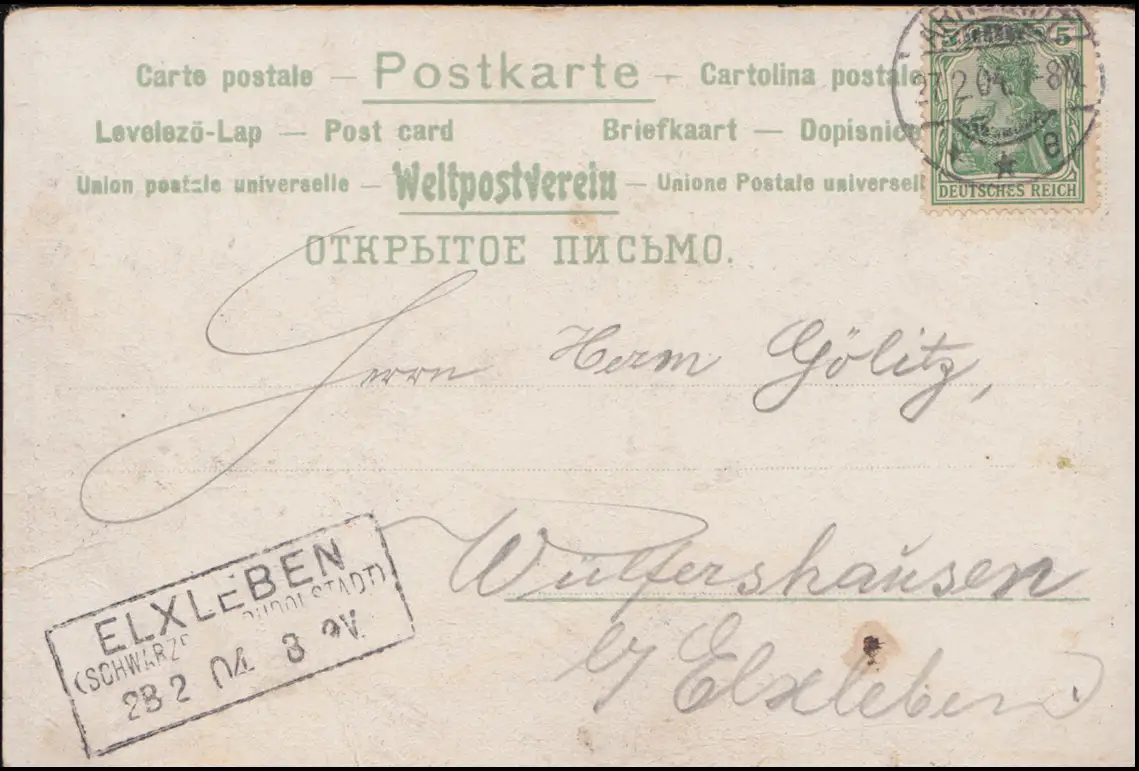 Carte de félicitations avec AK-O R3 ELXLEben (CHwarzenbuRG-RUDOLSTADT) 28.2.1904