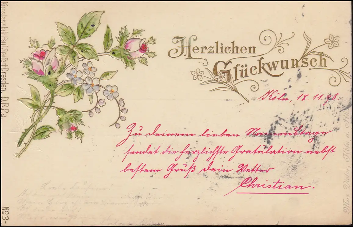 Carte de félicitations n° 3 Kunstanstalt Paul Seyfert / Dresde, CÖLN/RHEIN 18.11.98