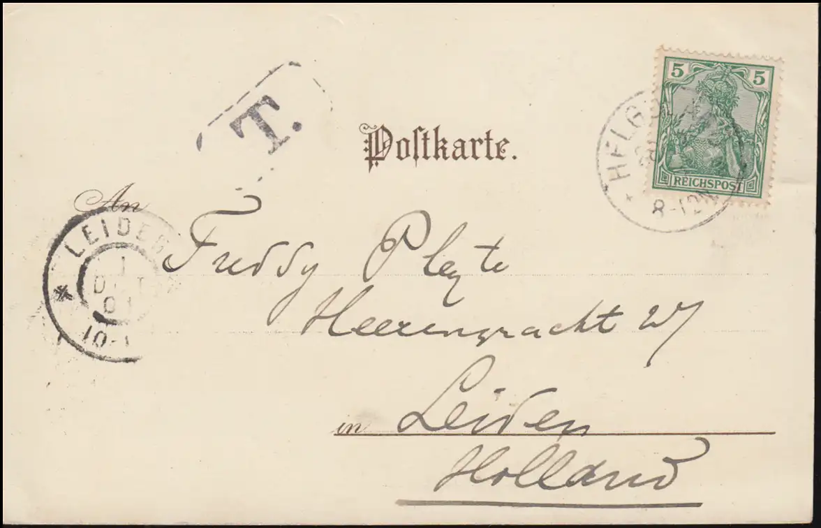 Carte de l'Helgoland avec la Dune, 28.11.1901 après Leiden / Holland