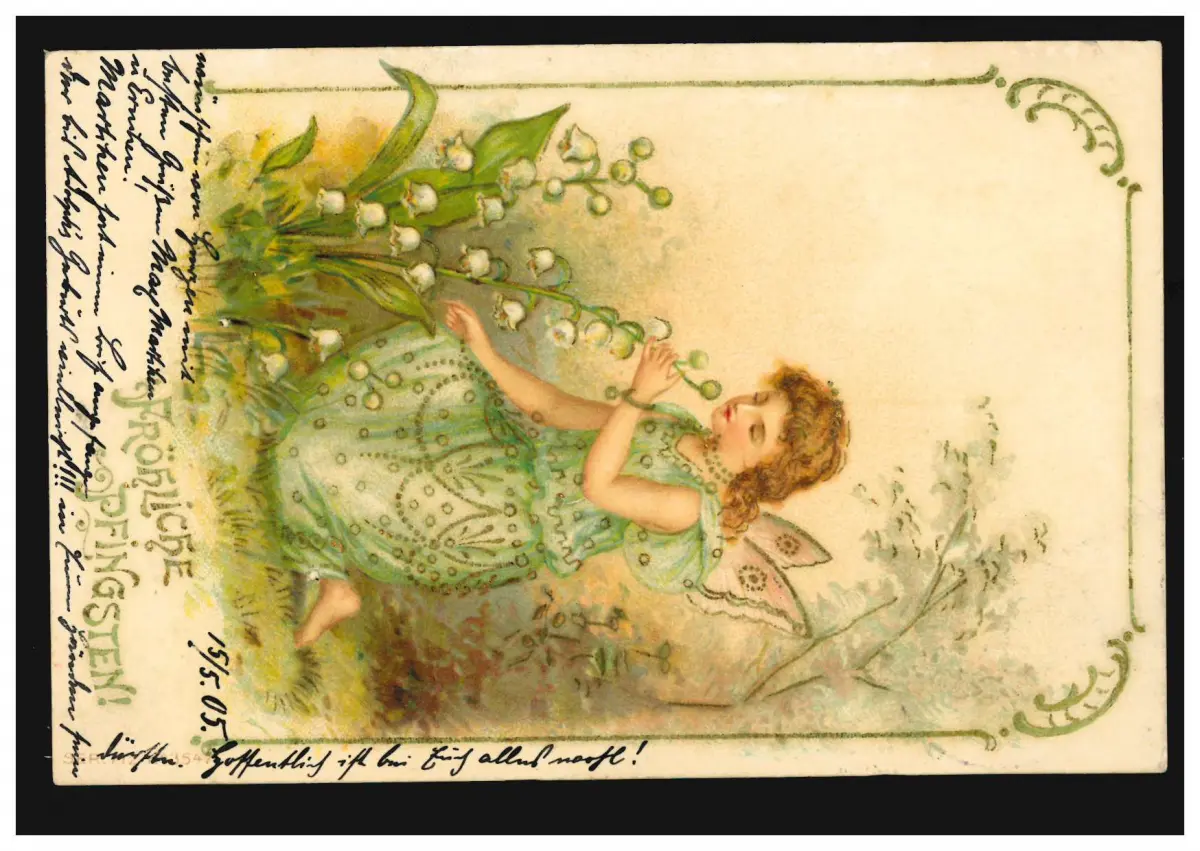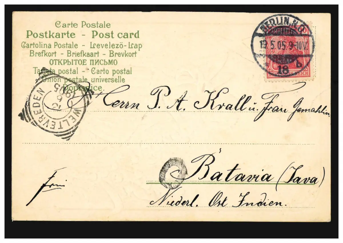 Carte de la Pentecôte Ange avec Maigloeck, BERLIN 19.5.1905 à Batavia