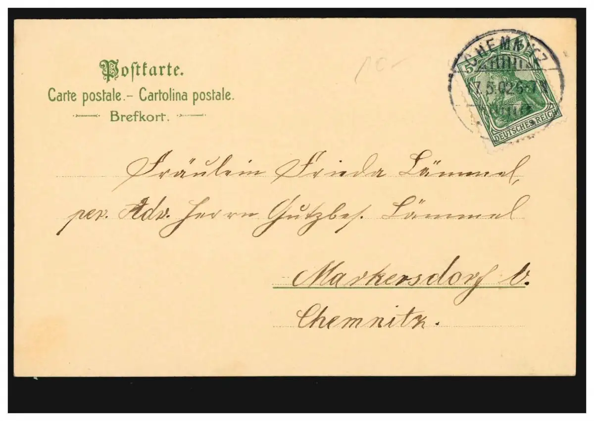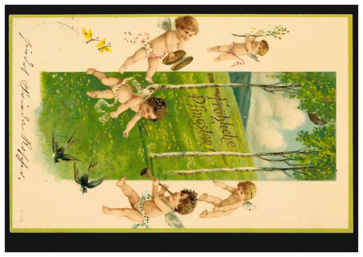 Carte de la Pentecôte des Anges en musique avec des hirondelles, CHEMNITS 17.5.1902