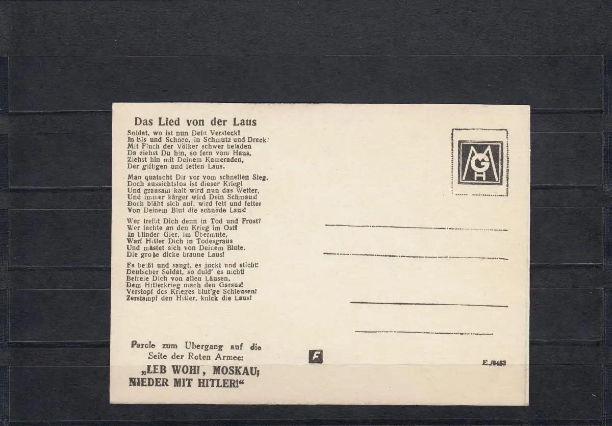 Carte de la popagande de guerre soviétique pour l'Allemagne Min. 21 H1, non utilisé