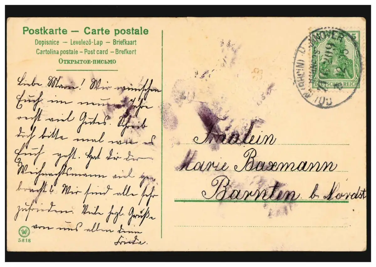 Carte de l'année Nouvel An Couple d'enfants, par train CÖLN-HANNOVER ZUG 209 - 3.12.1905