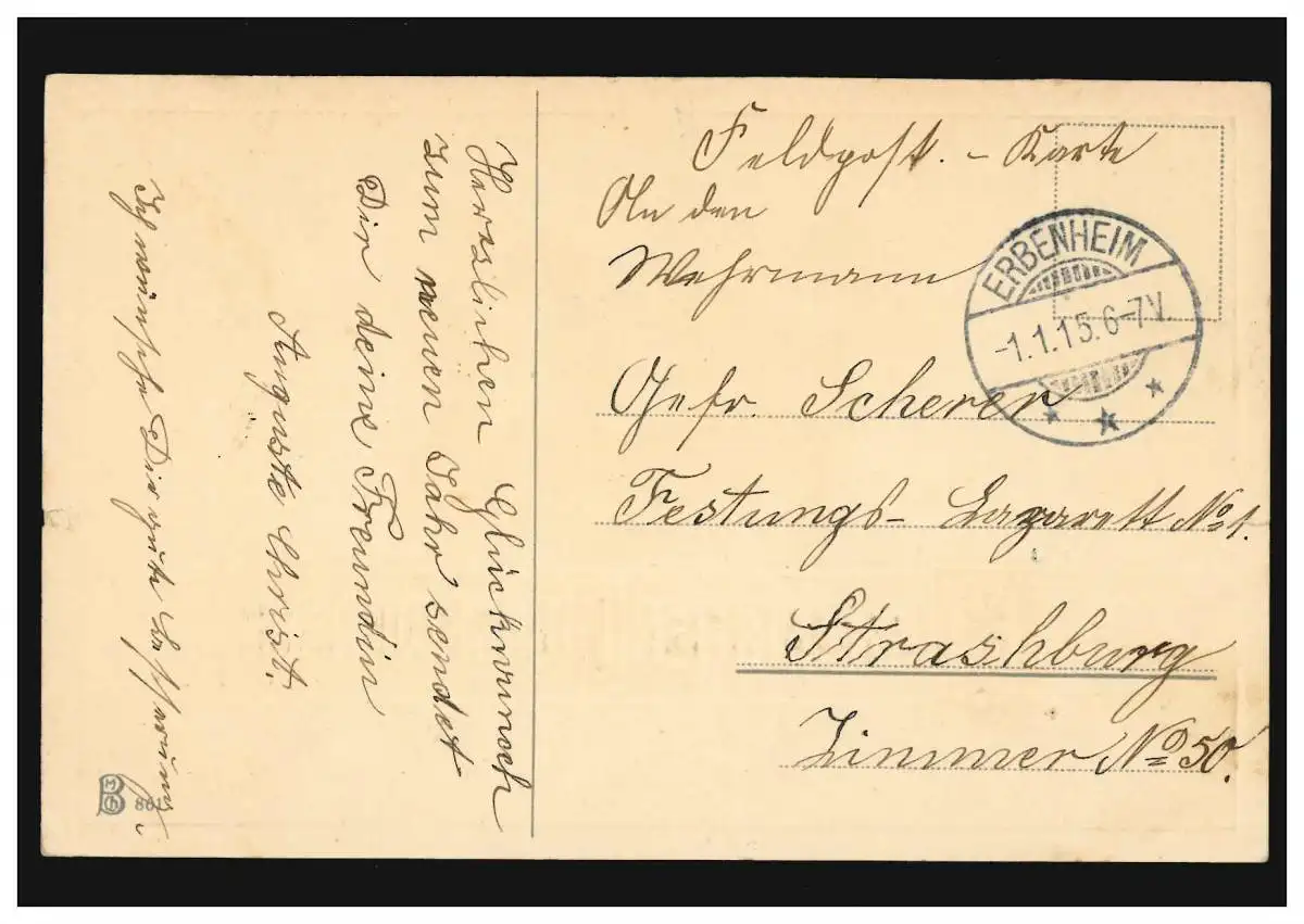 Carte de l'année Nouvel An Dansant et jouant enfants, ERBENHEIM 1.1.1915