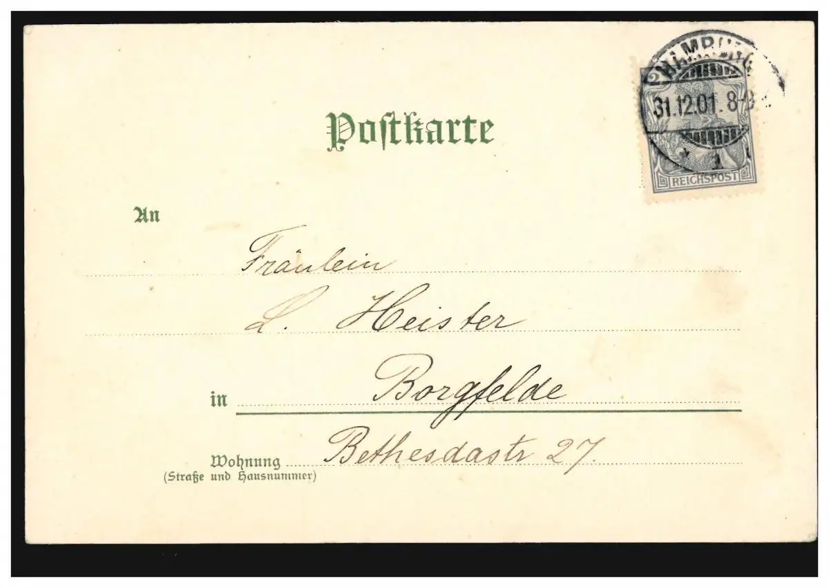Carte de l'année Nouvel An Otto Andres Patinoire Le fond de la chute, HAMBURG 1901