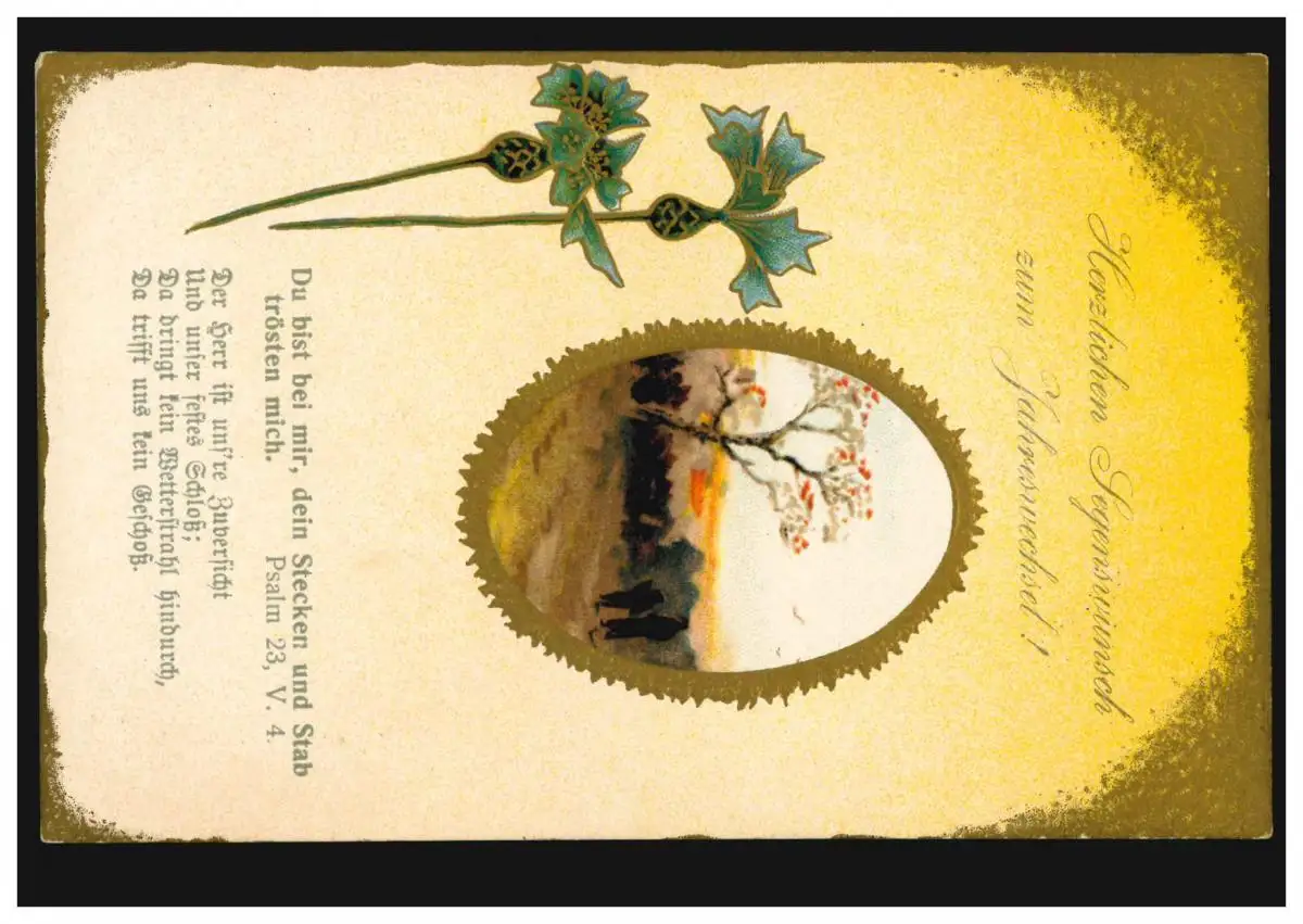 Carte de l'année Nouvel An Paysage avec randonneur Psaume 23, V.4, ALTENA 31.12.17
