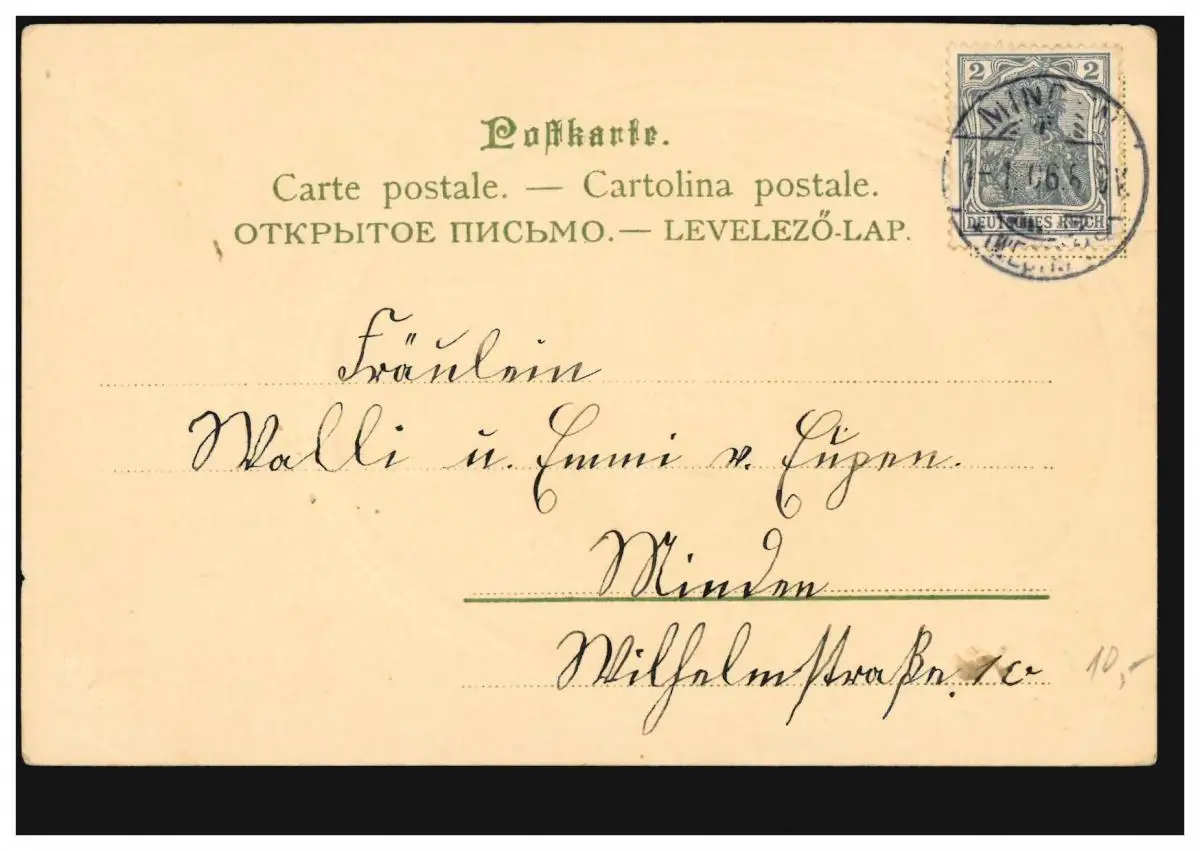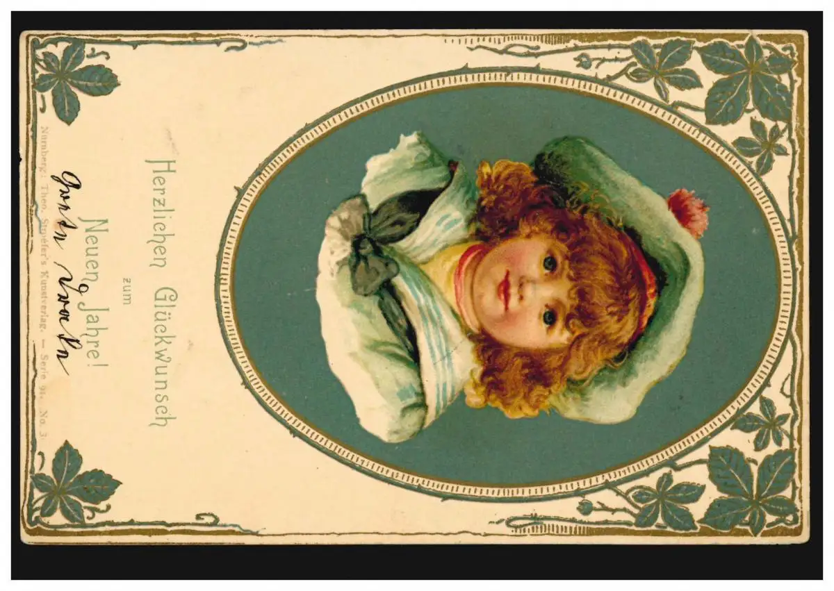 Carte de l'année Nouvel An Portrait de fille avec bonnet dans le Medaillion, MINDEN 1.1.1906