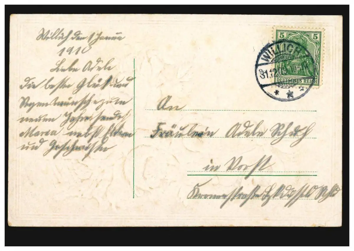 Carte de l'année Nouvel An Roses dans le panier, WILLICH 31.12.1909
