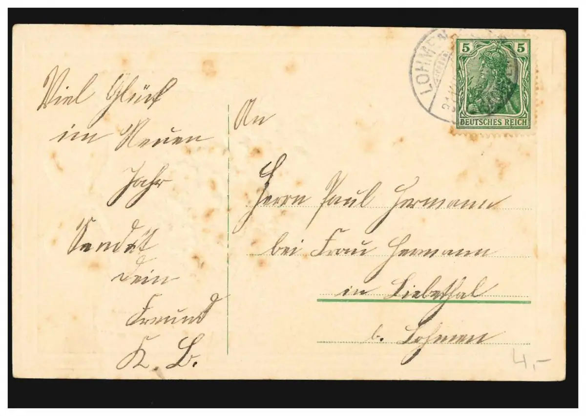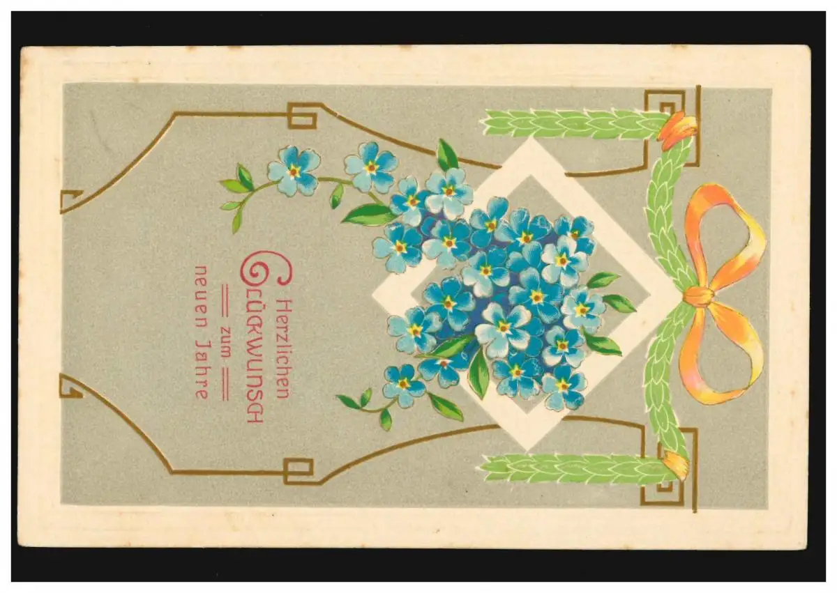 Carte de l'année Nouvel An Violet bleue au carré avec guirlande, LOHMEN 31.12.1900