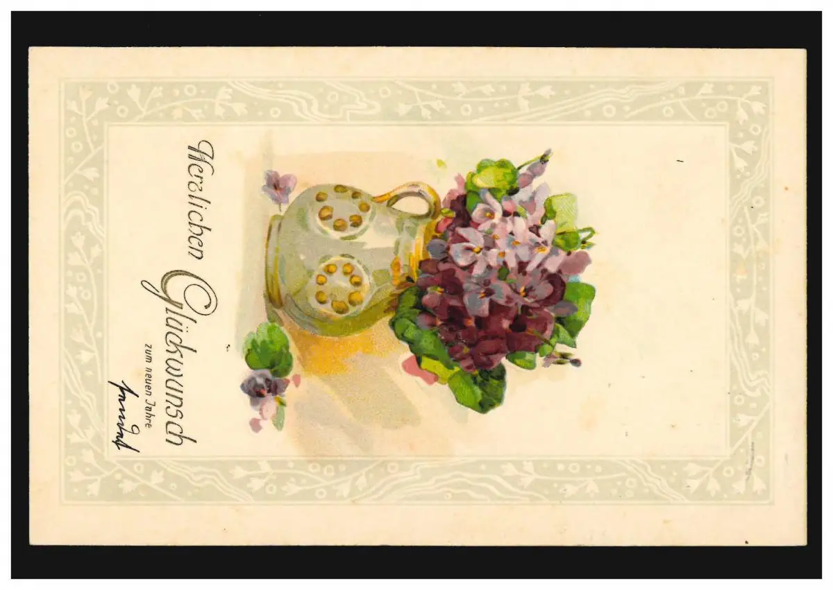 Carte de l'année Nouvel An bouquet de fleurs dans la cruche, GRAND ENHAIN 1.1.1908