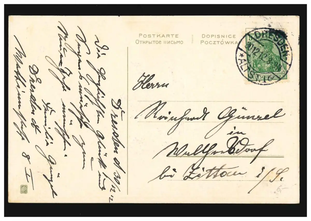 Carte de l'année Nouvel An pot de fleurs avec violette, VILLE DE DRESDE 30.12.1912