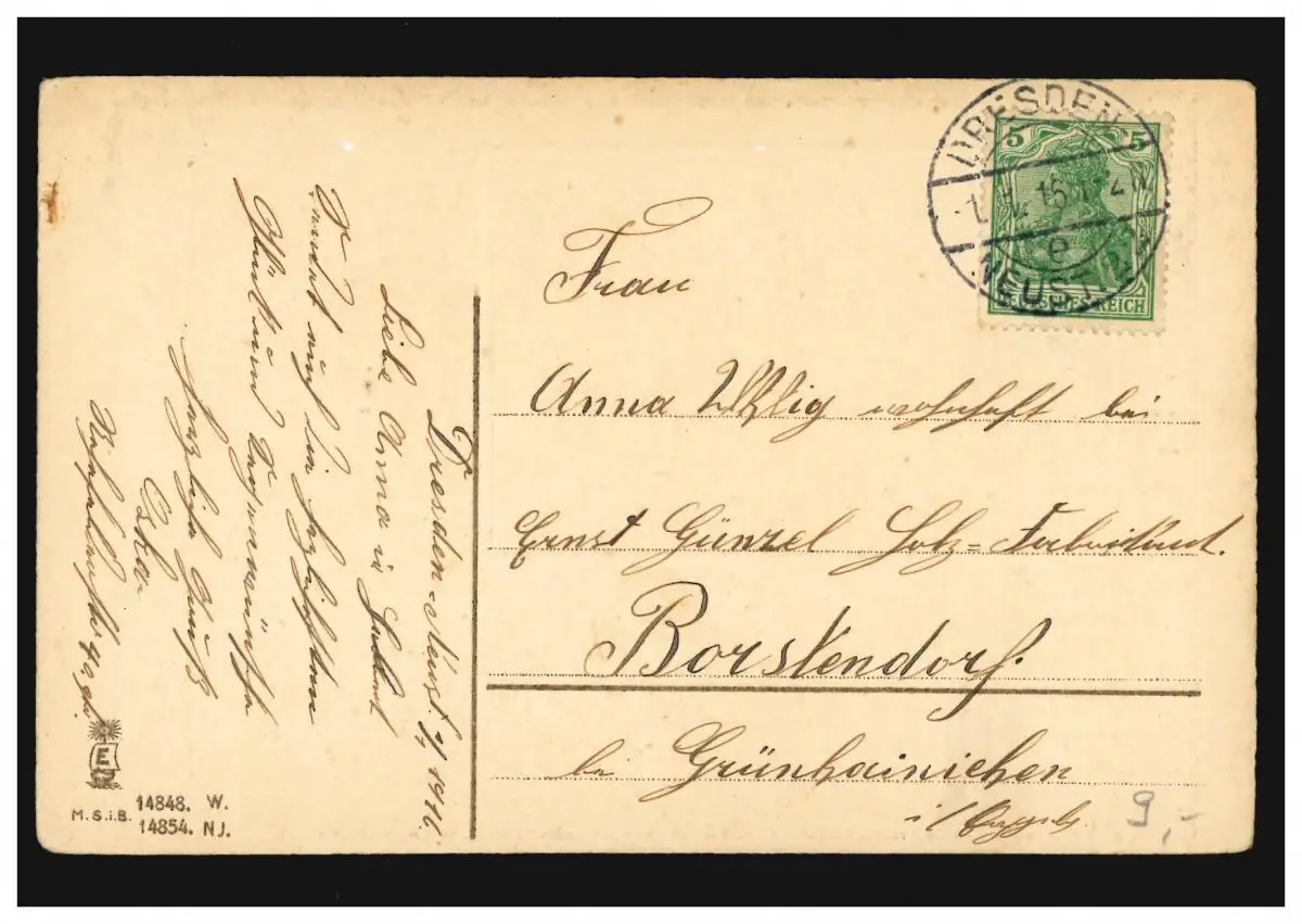 Carte de l'année Village en hiver avec pins de pin, DRESDEN-NOUSTADT 1.1.1916