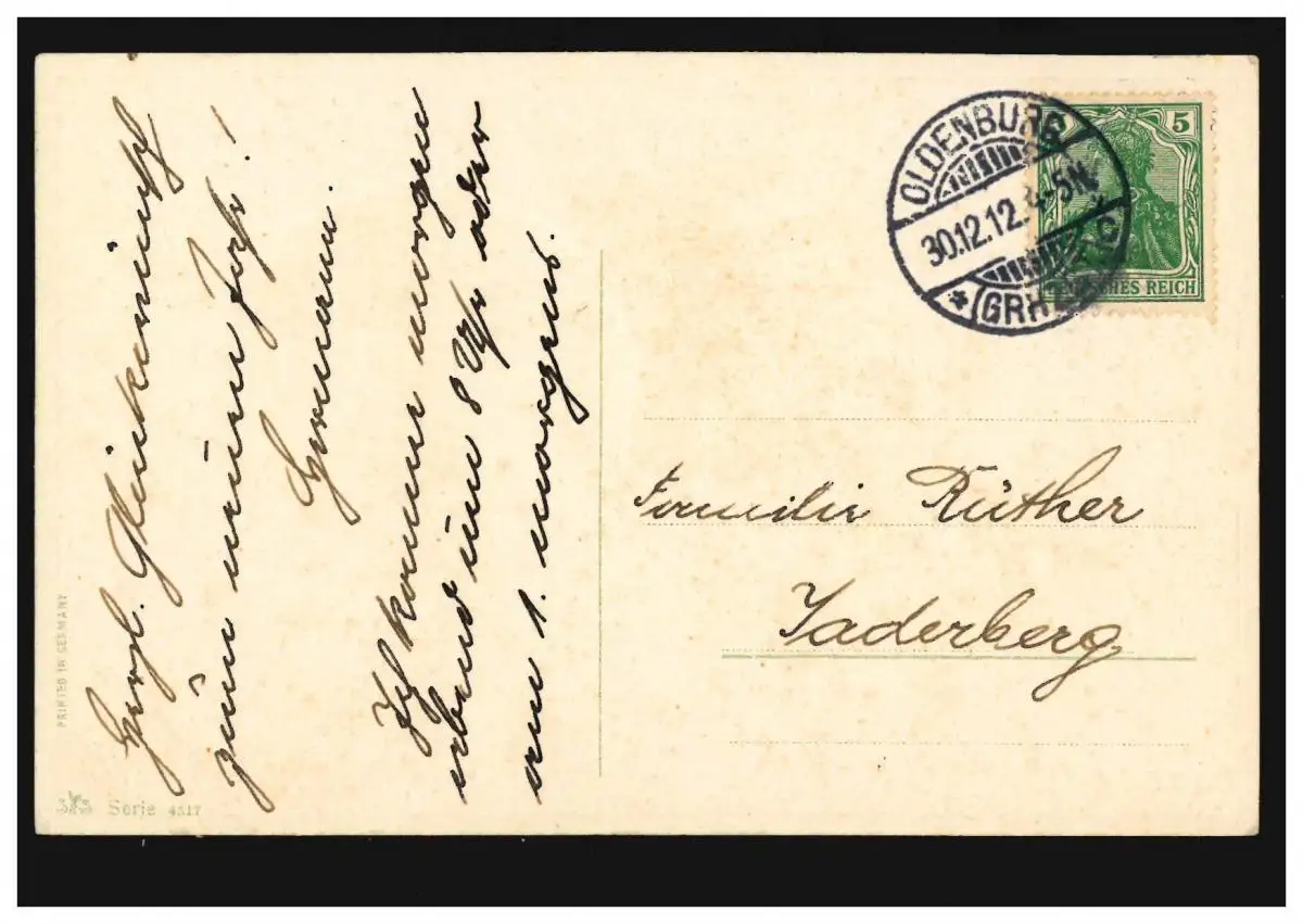 Carte de l'eau de la cascade du Nouvel An Branche de sapin, OLDENBURG 30.12.1912