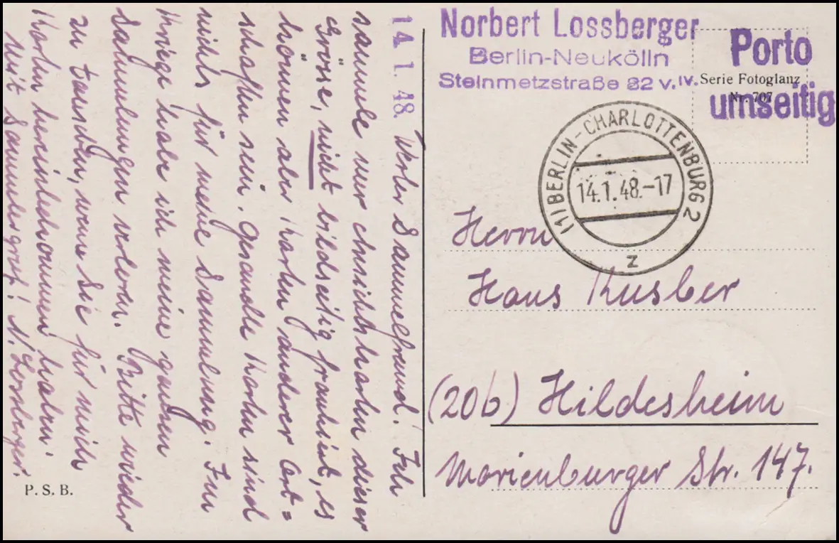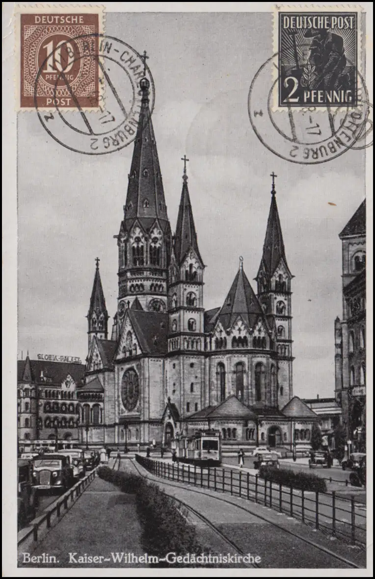 Carte de l'église de la mémoire de Kaiser-Wilhelm, BERLIN-CHARLOTENBURG 14.1.1948