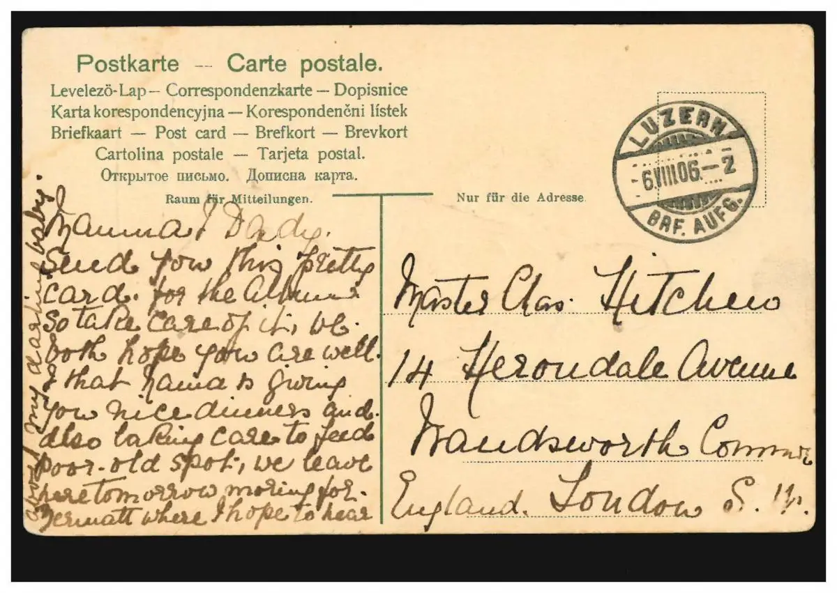 Carte de l'enfant dans le coffre d'Appenzeller, GUZERN 6.8.1906