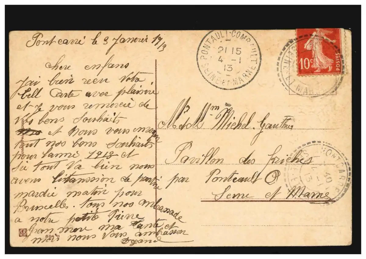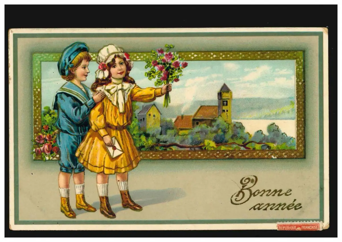 Carte de l'image Nouvel An Bonne Anne Enfants avec paysage, PONTAULT 4.1.1913