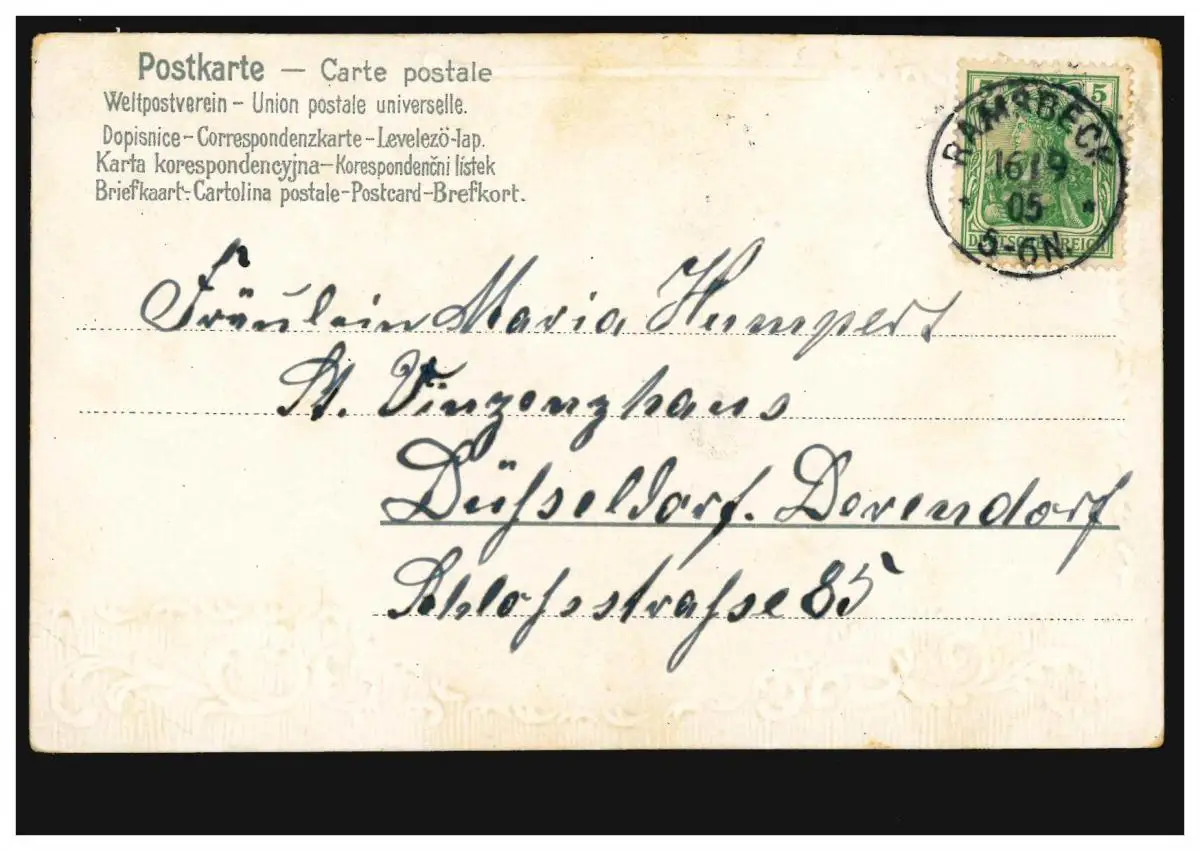 Carte de l'image paysager avec pont et église, RAMSBECK 16.9.1905