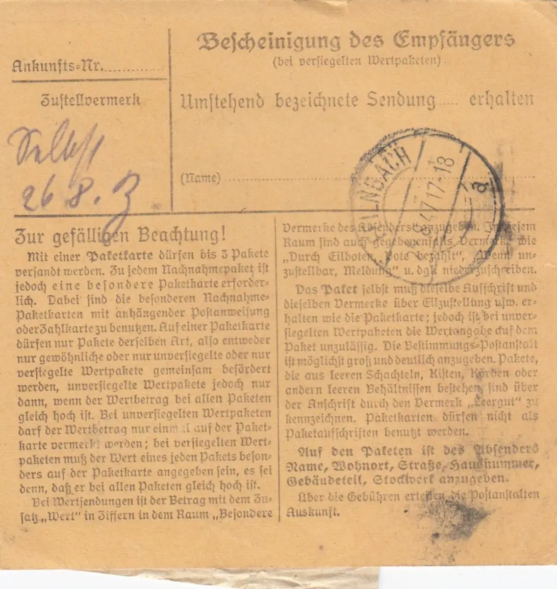 Carte de paquet 1947: Munich vers Feilnbach b. Aibling