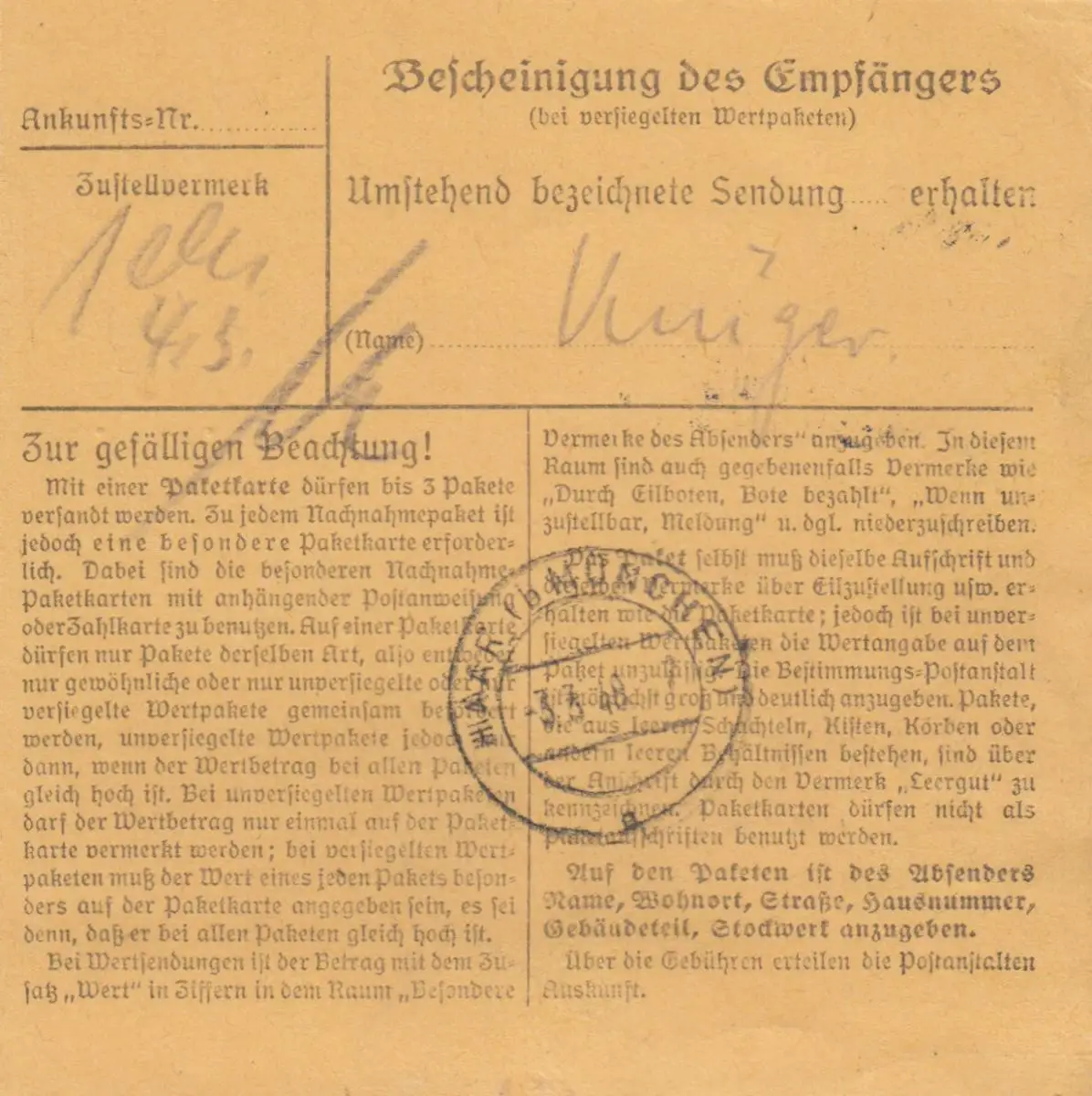 Carte de paquet 1948: filerie de coton Thalkirchdorf, égouchisme, carte de valeur