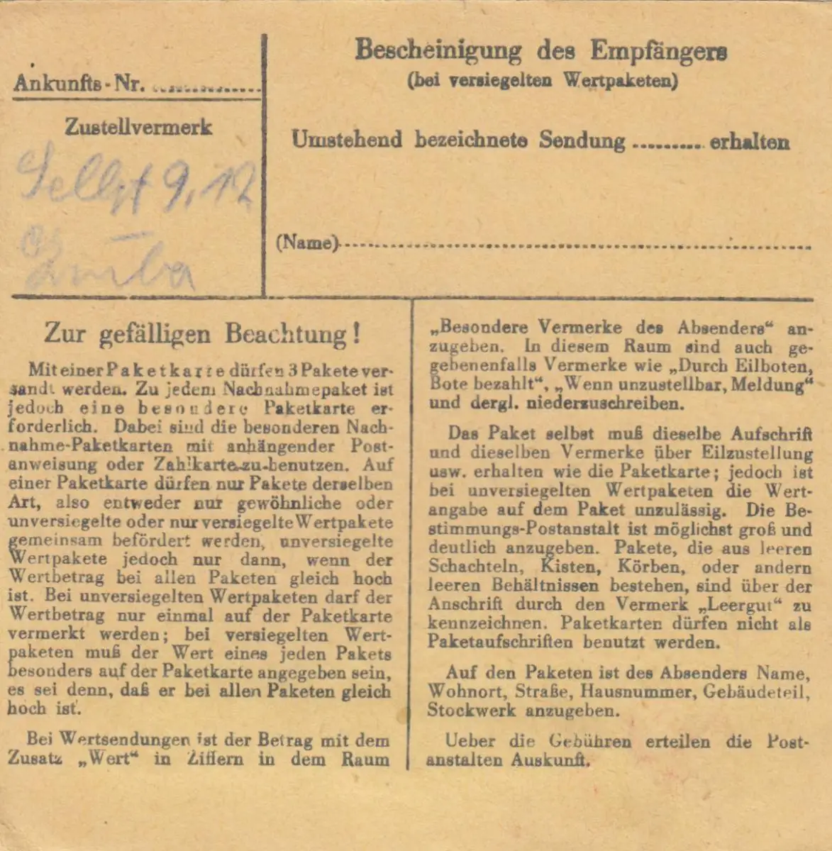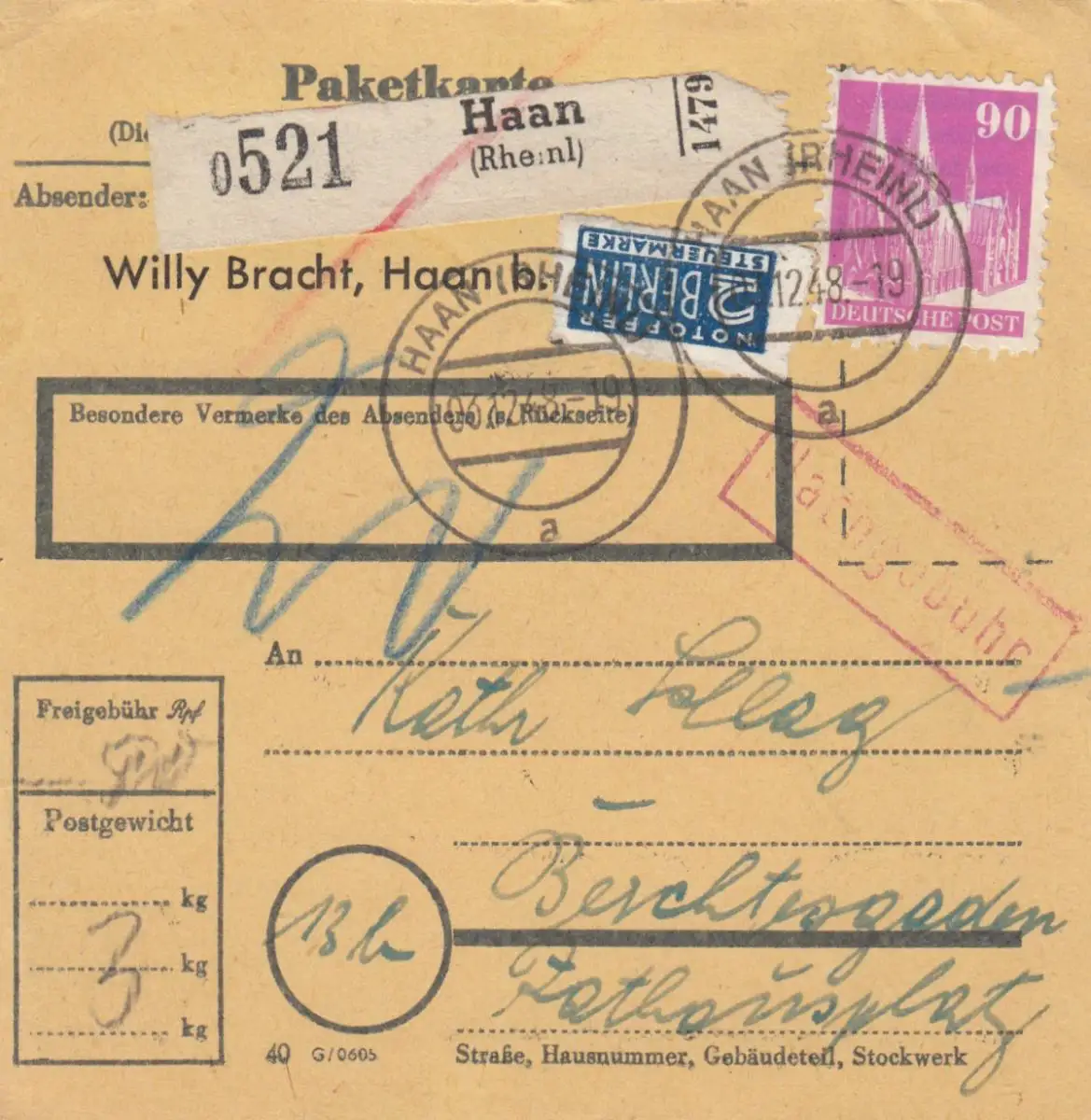 Carte de paquet BiZone 1948: Haan n. Berchtesgaden, auto-réservation, frais supplémentaires, nopot.