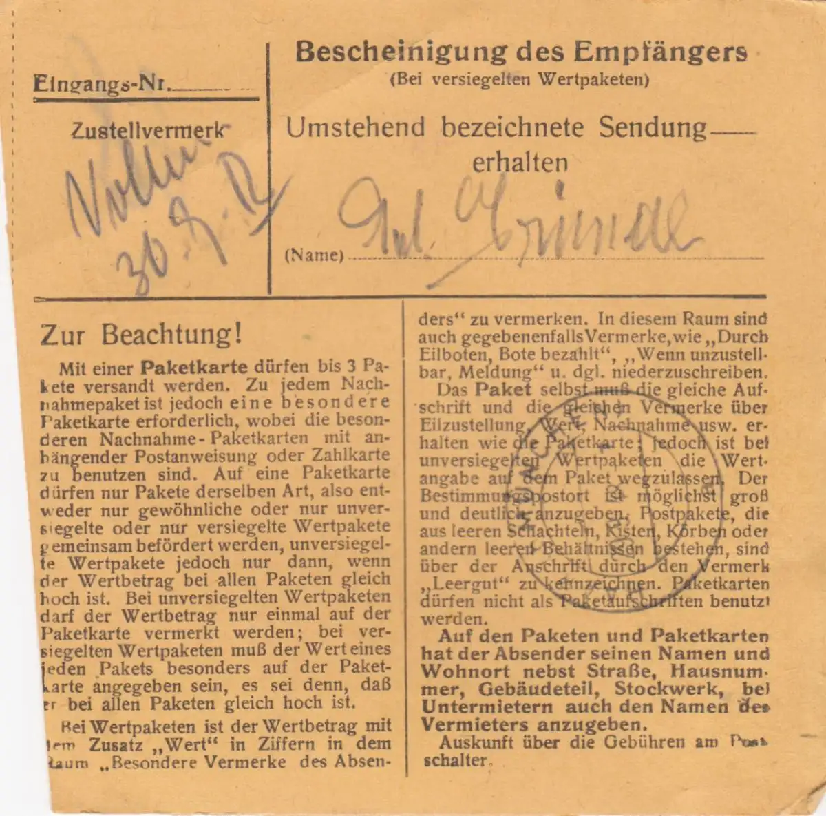Carte de paquet BiZone 1948: Ingolstadt après Eglfing b. Haar
