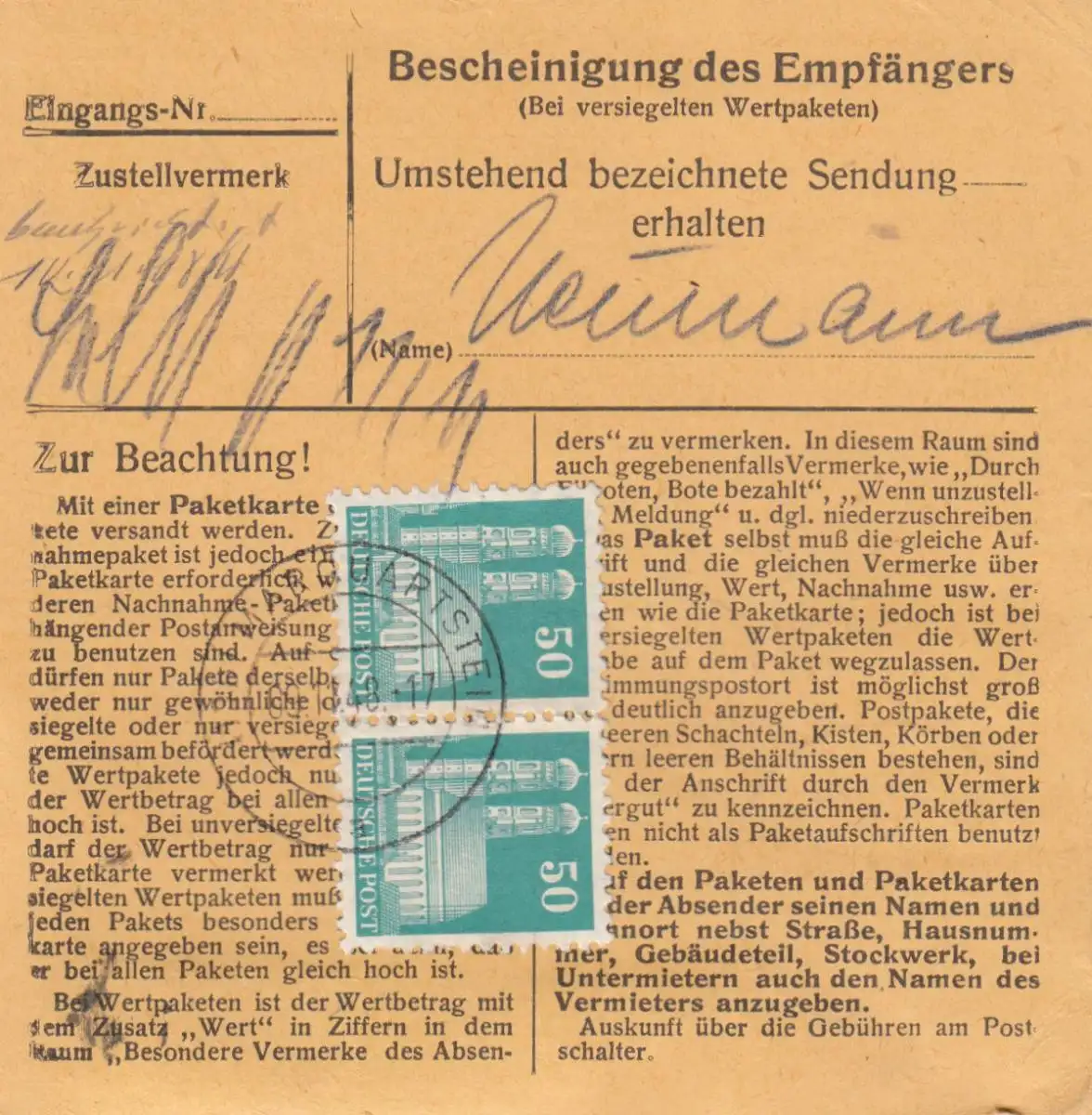 Carte de paquet BiZone 1948: Marquartstein selon Haar b. Munich
