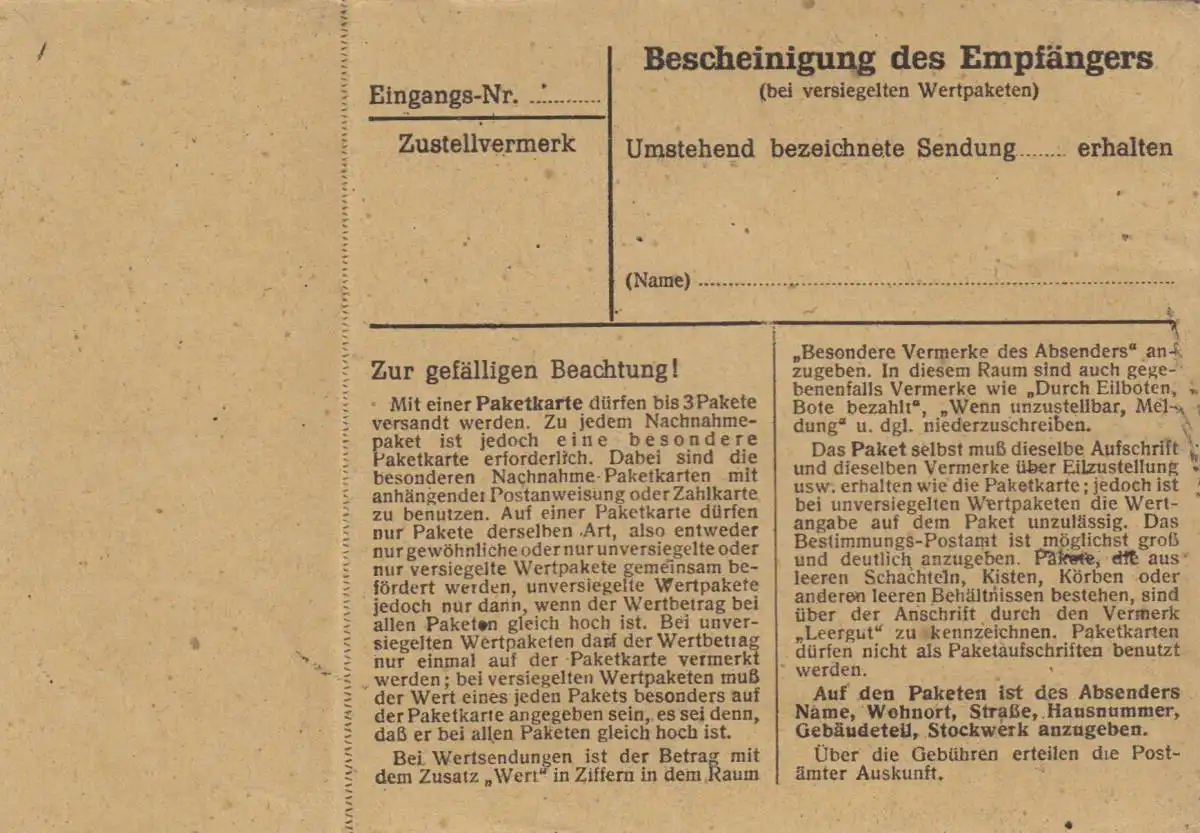 Carte de paquet BiZone 1948: Oppenweiler après Munich-Feldmochining
