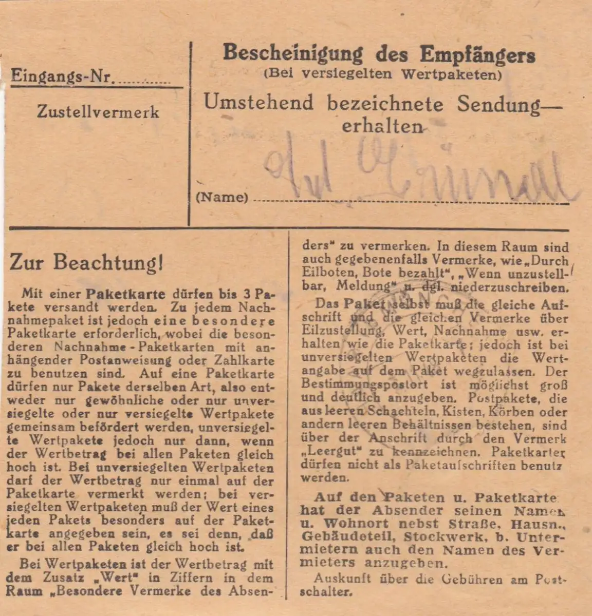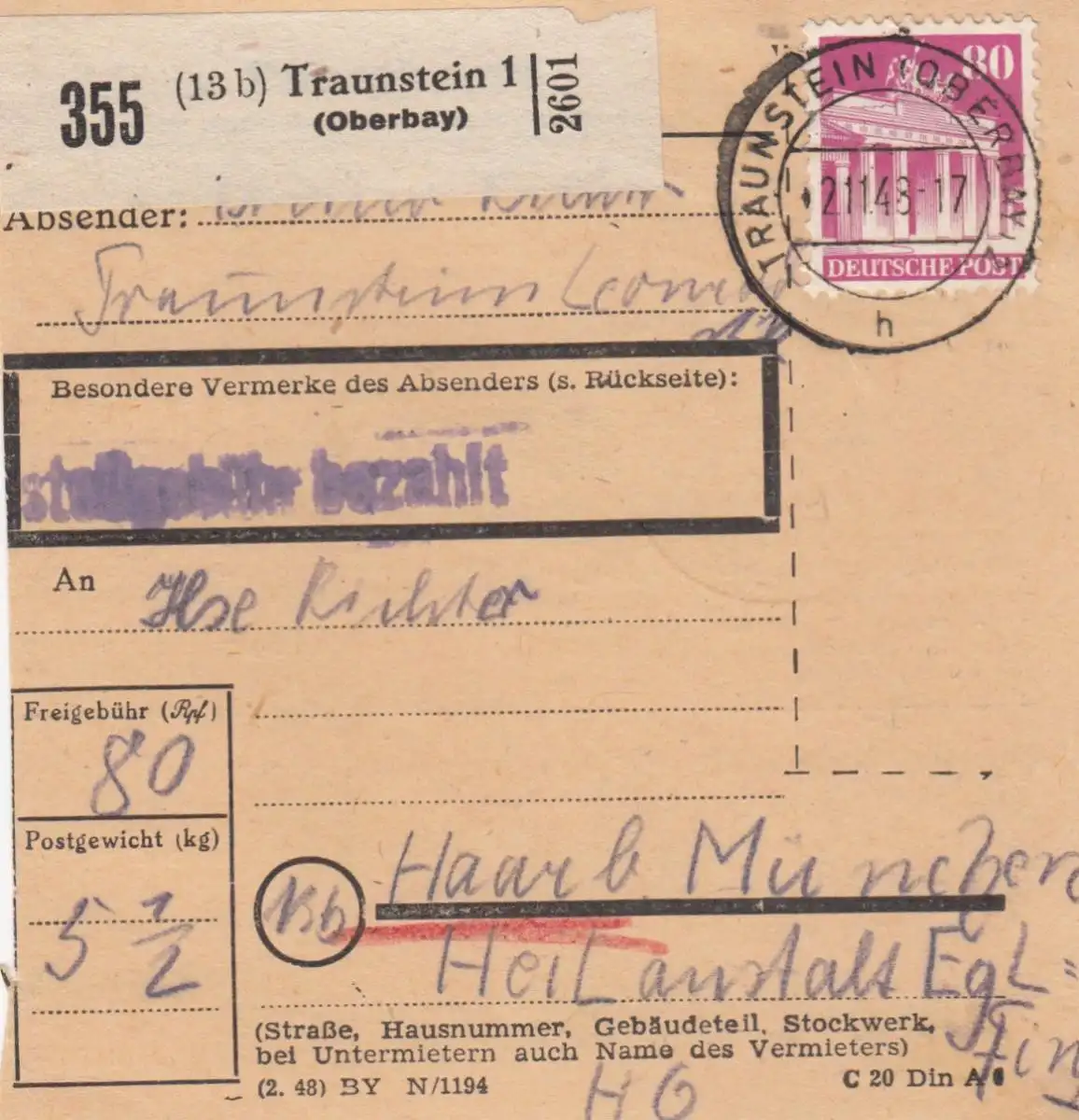 Carte de paquet BiZone 1948: Traunstein selon les cheveux