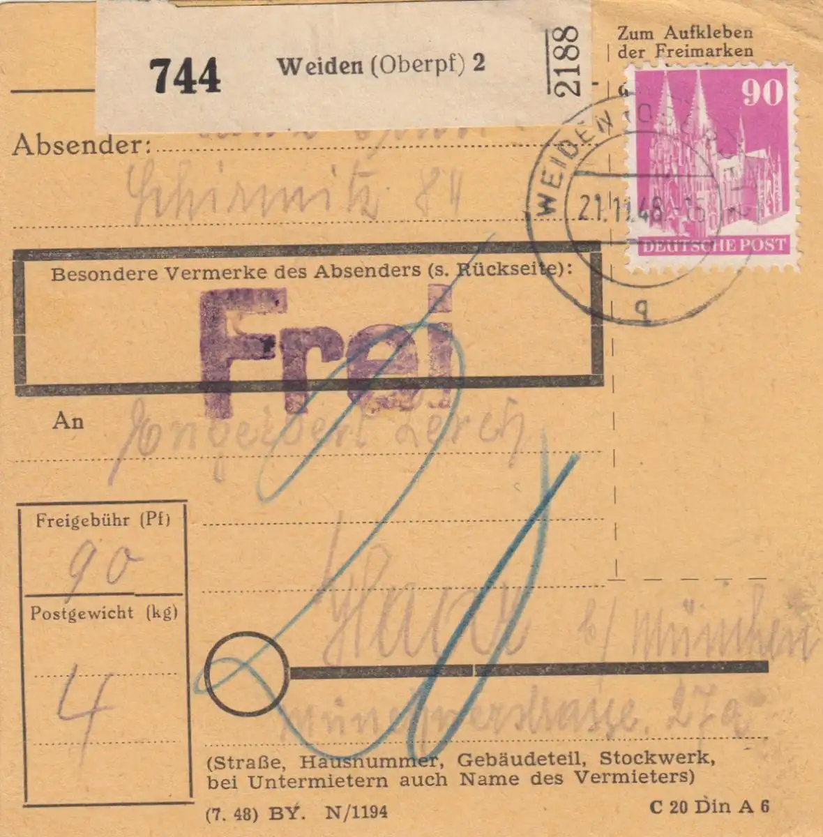 Carte de paquet BiZone 1948: saules par Haar b. Munich