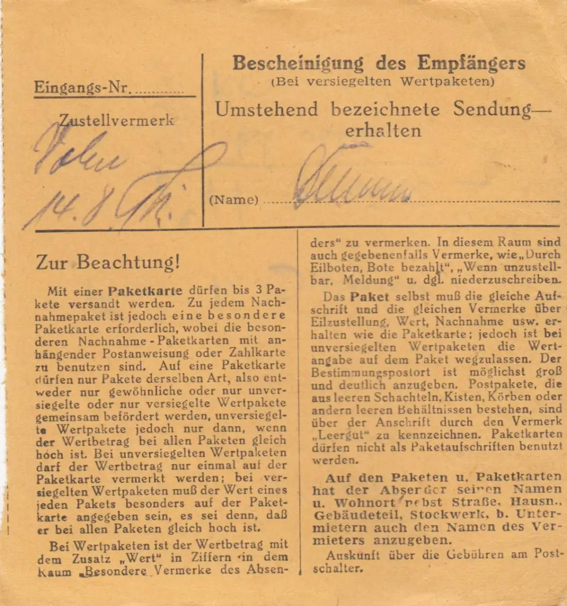 Carte de paquet BiZone: Gnotzheim vers Ottobrunn, frais supplémentaires
