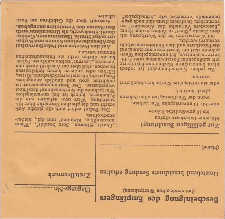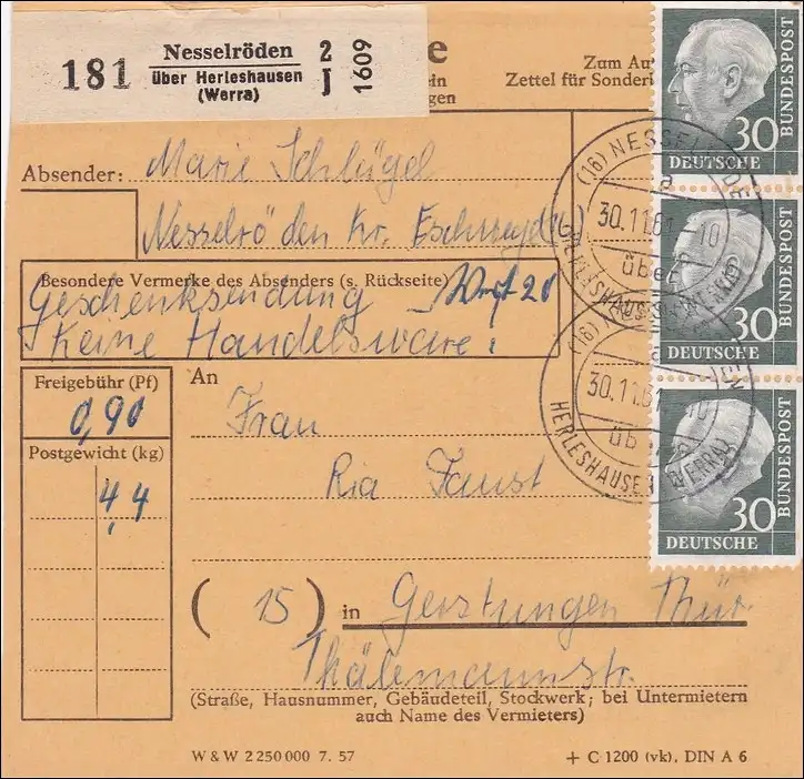 Carte de paquet Rennes d'ortie selon les caractéristiques avec plusieurs francs en 1961