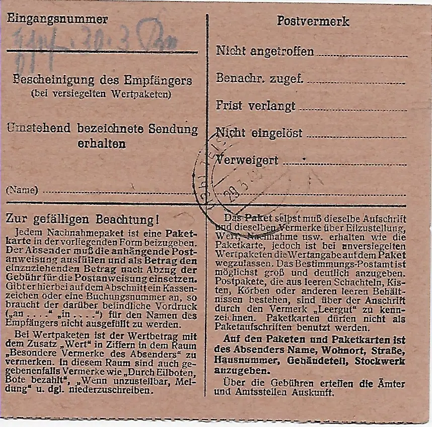 Carte de paquets Offres d'achat Entrezweisach/Württ, vers Teisendorf 1948, MeF
