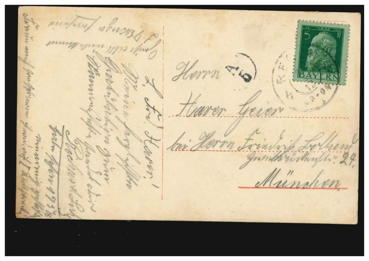 Carte de photos Jour de nom Joyeux adultes avec trompette, couru 1913