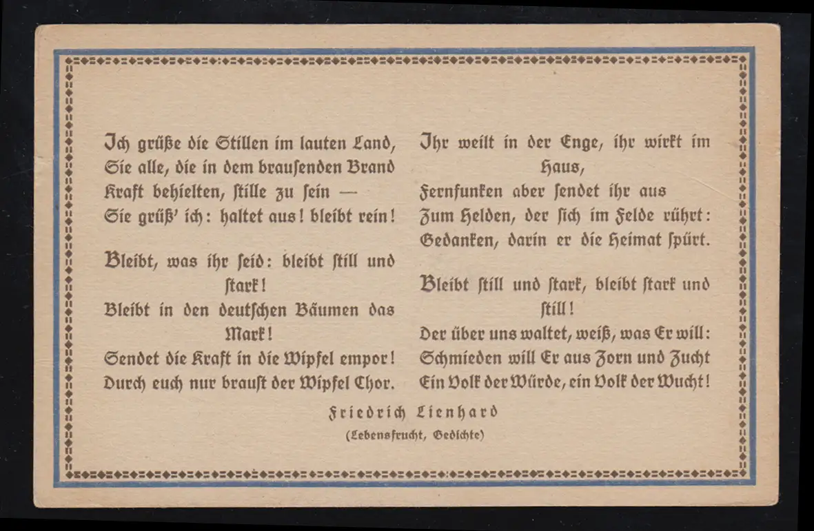 Carte de phrase de l'AK Lyrique Friedrich Lienhard: Je salue l 'allaitement dans la terre bruyante...