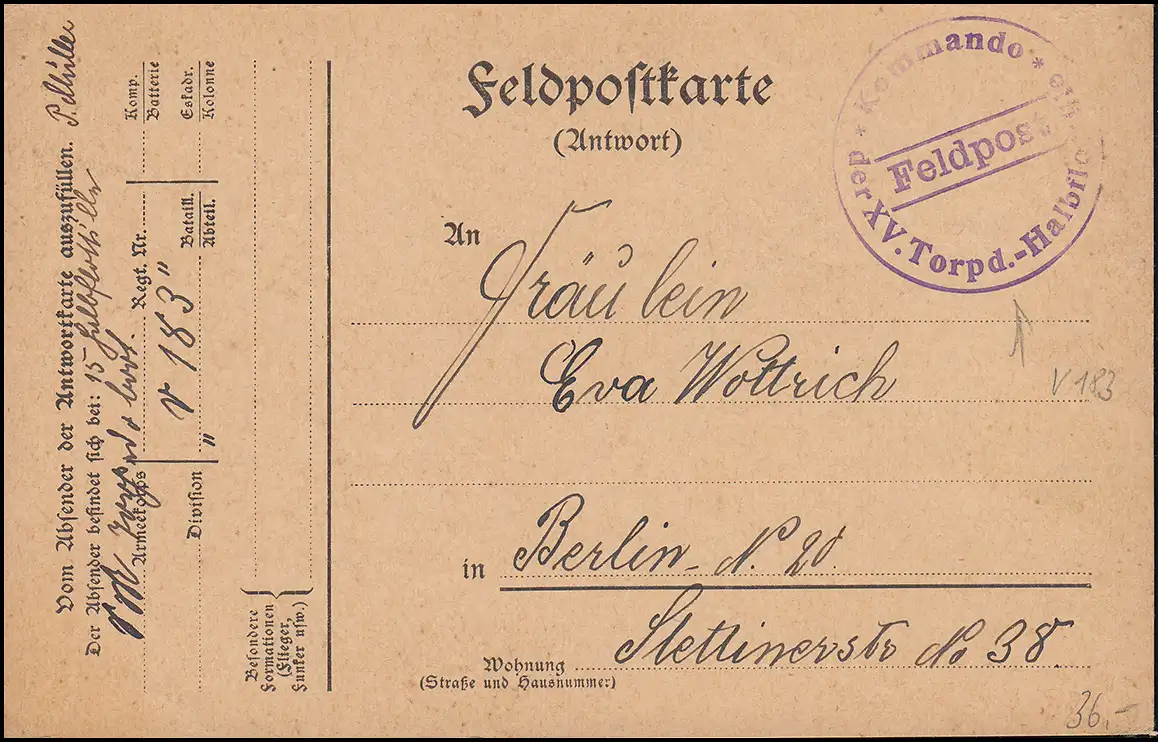 Carte de poste de Marine BS Commande de la 15e torpille demi-flottille 23.2.1915