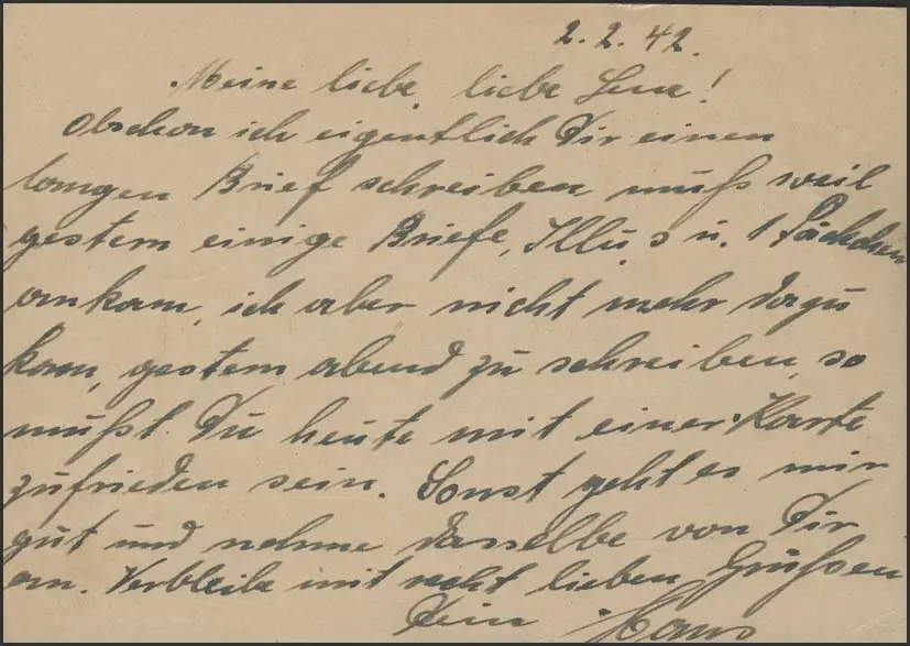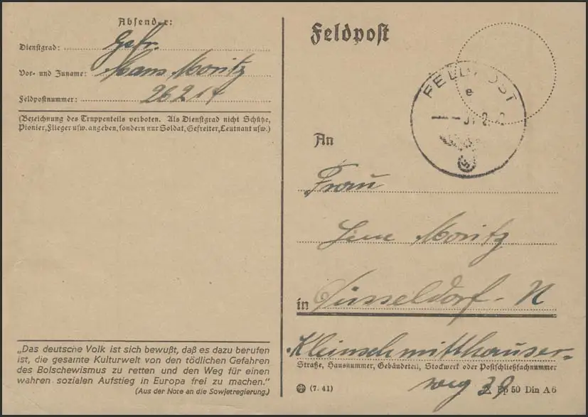 Carte de poste de terrain PF 26214 le 4.2.1942