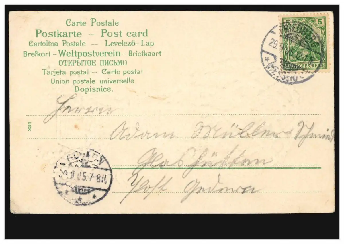 Carte de pré-conduite Ballon avec gondole en fleurs de violette, FRIEDBERG 29.9.1905