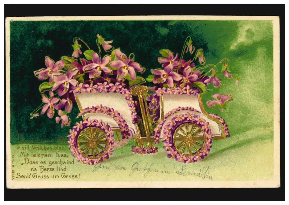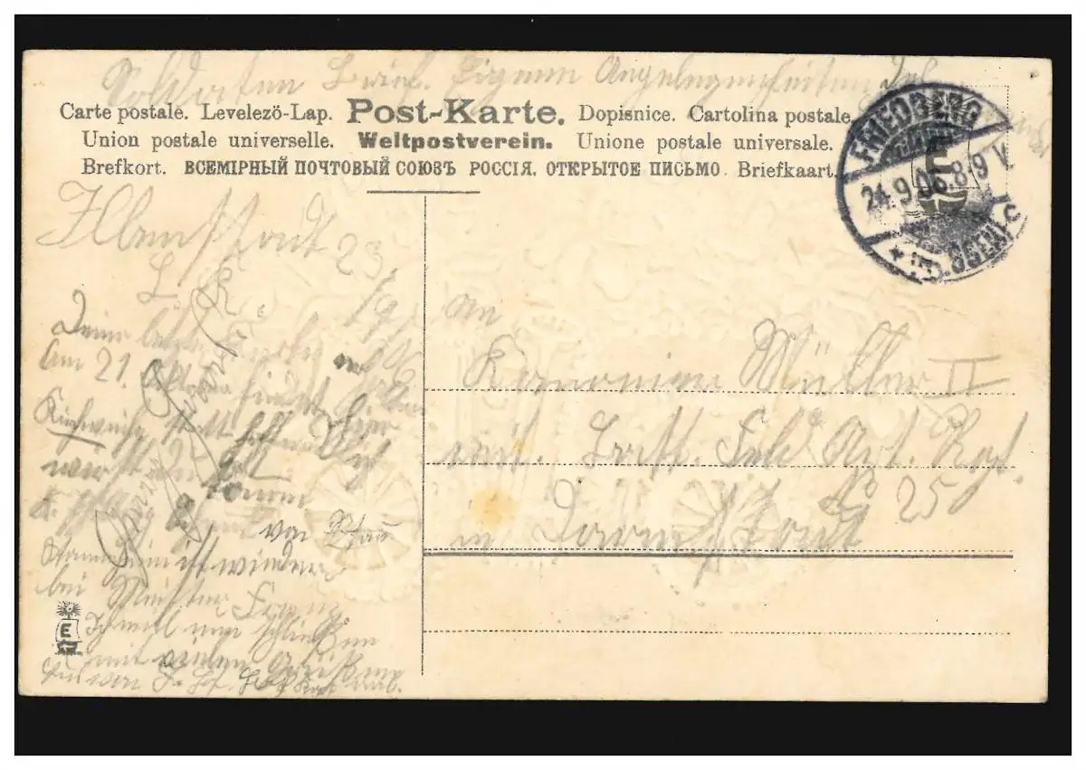 Carte de pré-goût Poème Par couloir et au-delà violette bleu ..., FRIEDBERG 24.9.1906