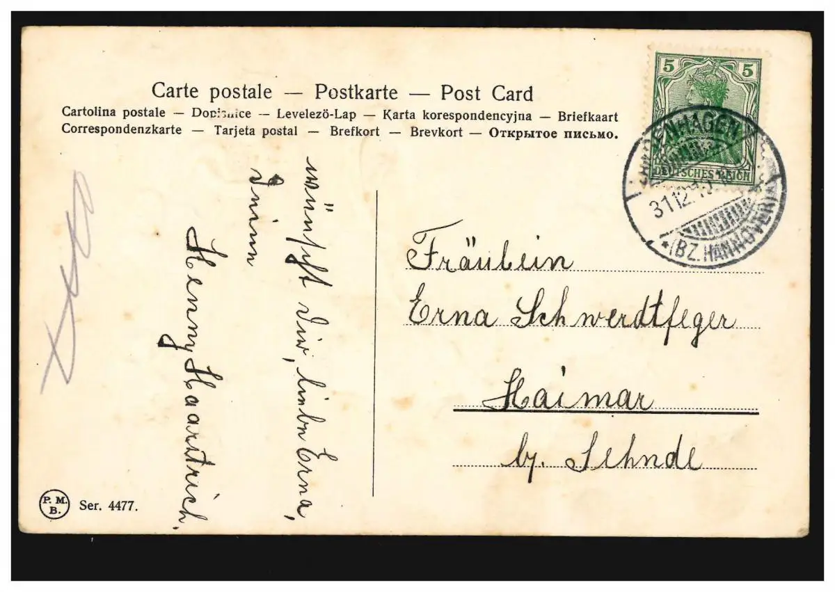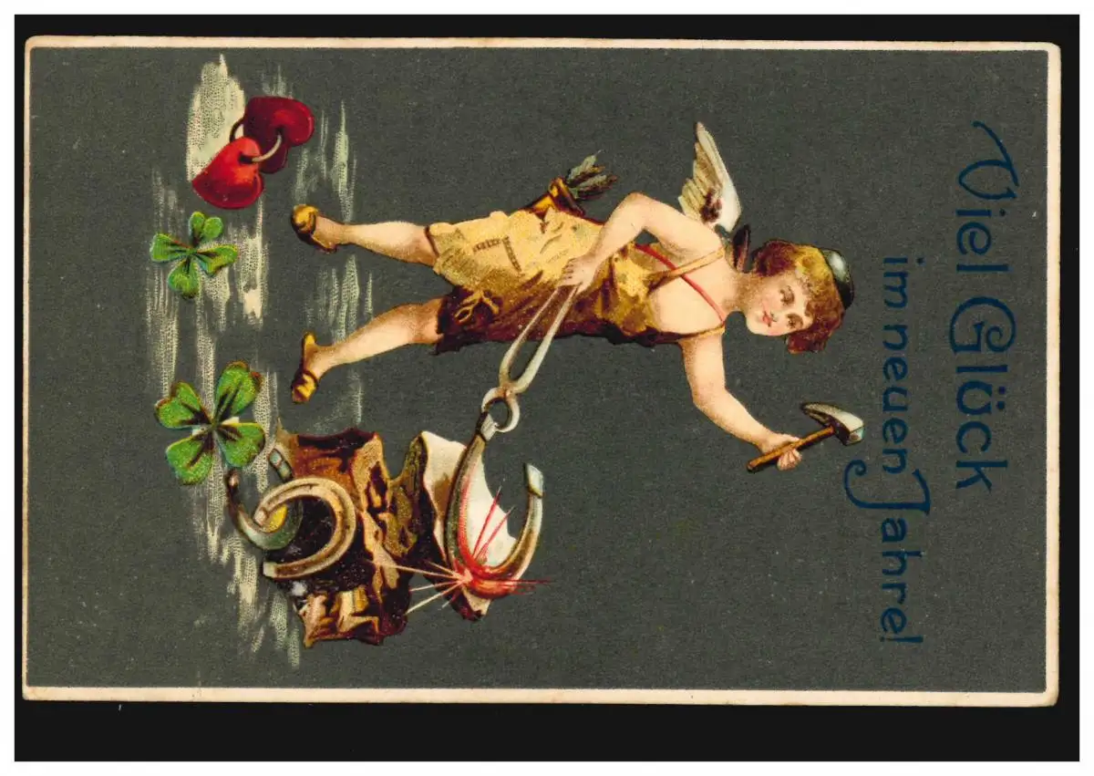 Carte de pré-repas Nouvel An Engel forge des fers à cheval, LANGENHAGEN (BZ. HANNOVER) 31.12.10